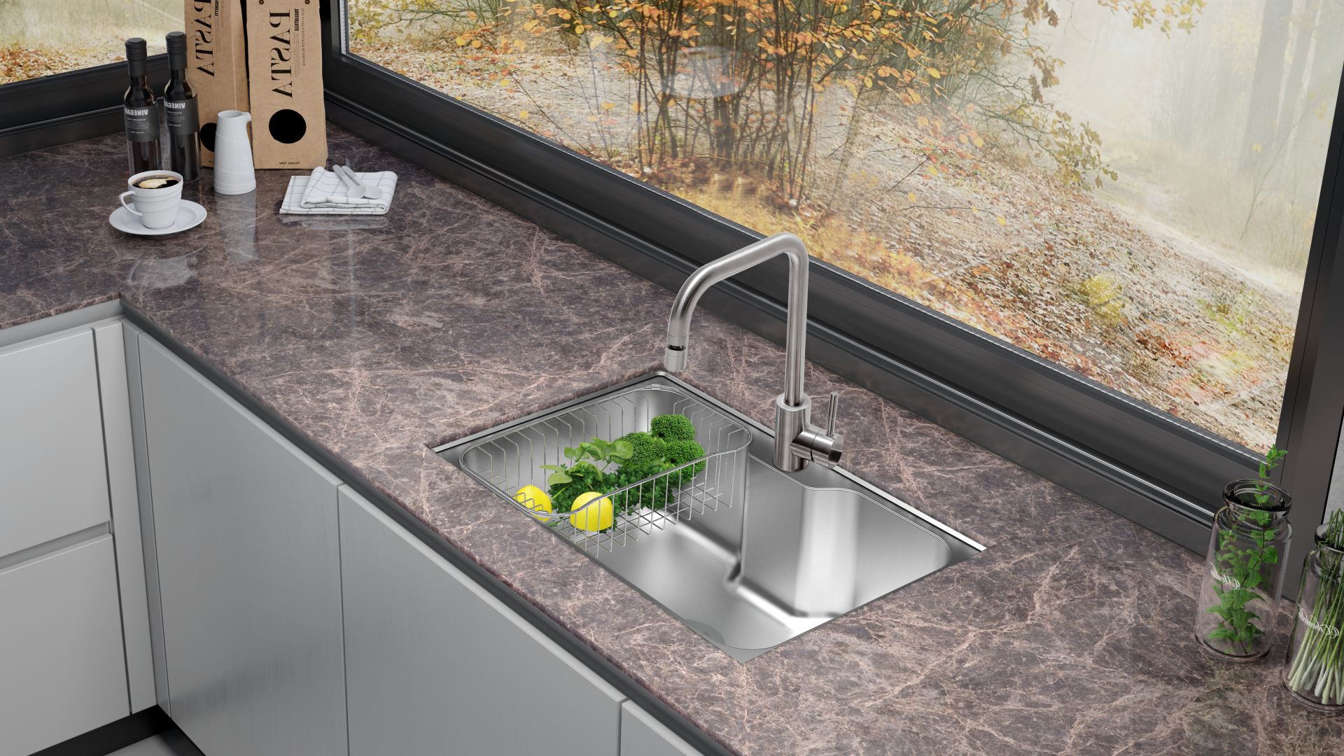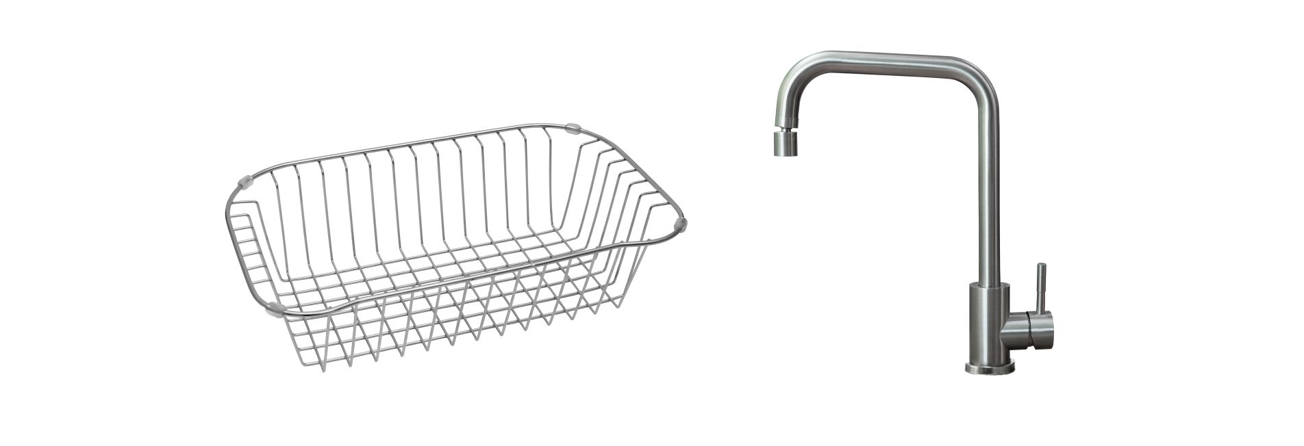 A CUBA FUNZIONALE 239 em aço inox acetinado, acompanha um Kit, aramado escorredor e misturador monocomando, estes acessórios auxiliam e conferem mais praticidade no desempenho das tarefas diárias. A FUNZIONALE 239 é ideal para diferentes projetos de cozinhas.