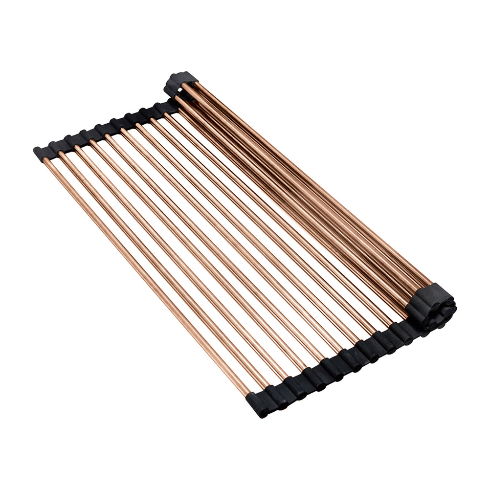 GRADE ESCORREDORA. COM BORDAS DE SILICONE. ACABAMENTO ROSE GOLD ESCOVADO. TAMANHO: 35,5 CM X 44 CM.
