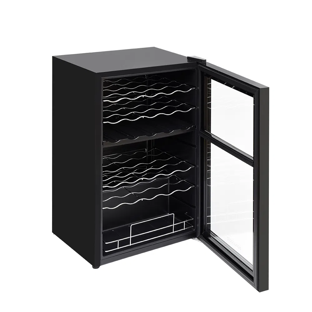Com design atemporal que combina com todos os ambientes, a Adega de 33 Garrafas contém o sistema de baixo ruído que permite alta performance sem causar incômodos sonoros, rack de vinhos para melhor visualização dos rótulos de vinho e luz interna Led que consome menos energia que uma lâmpada de energia filtro solar.