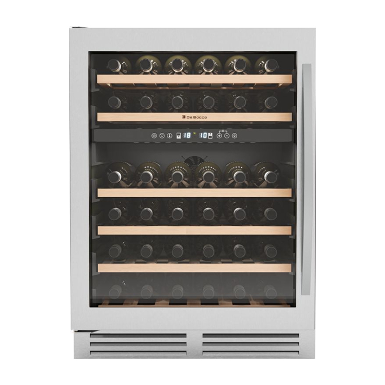 As temperaturas são ajustadas individualmente em cada zona, sendo de 5°C a 12°C e 12°C a 20°C, possibilitando armazenar diferentes classes de vinho na mesma adega.