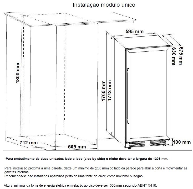 Seu elegante design se integra em ambientes de diferentes estilos podendo ser embutida em um móvel inclusive em par, armazenando até 326 garrafas em 4 diferentes zonas de temperaturas.