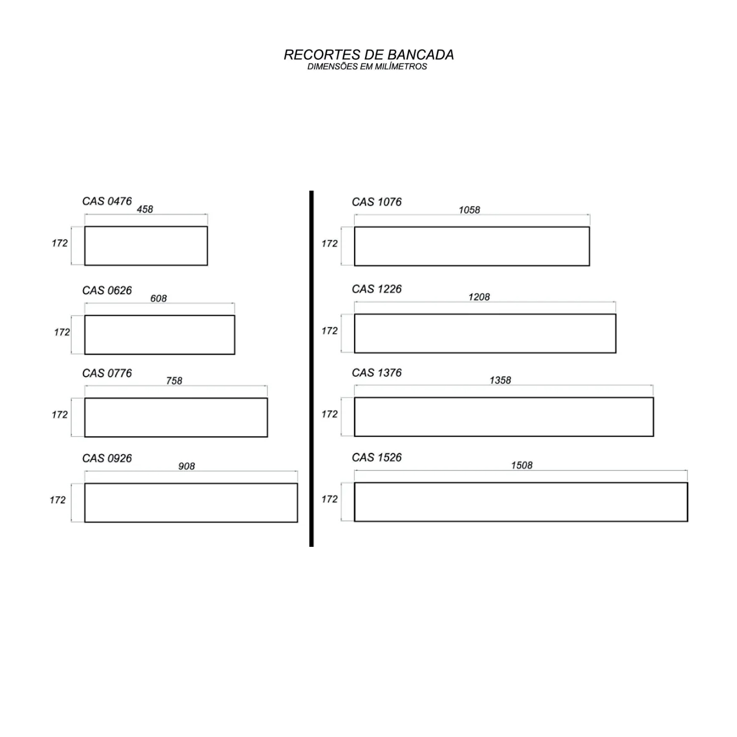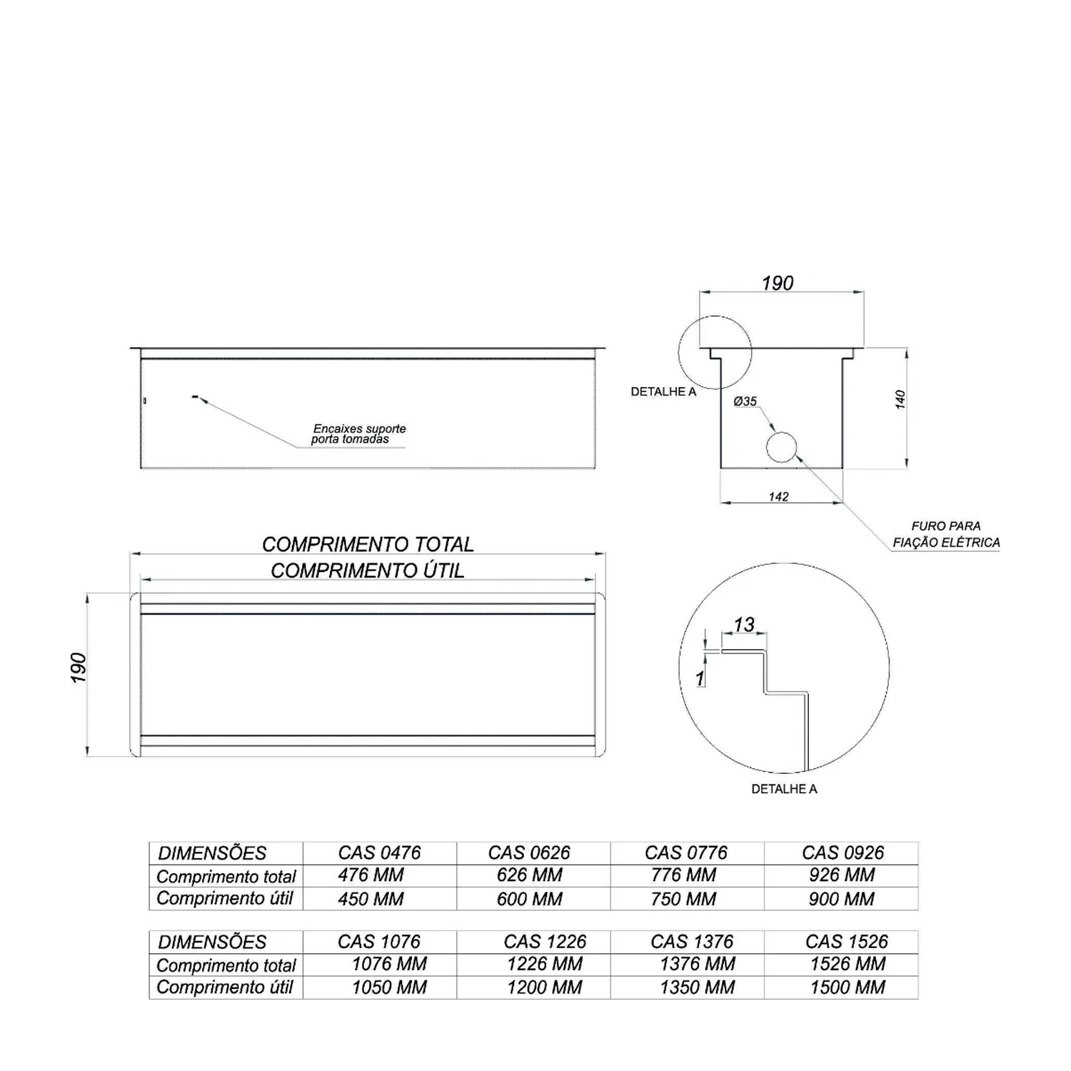 As calhas secas embutidas são ideais para organizar os utensílios utilizados para o preparo de alimentos. Para acomodá-los dentro da calha você pode utilizar acessórios dito “secos” tais como porta tomadas, porta facas, porta tábua, porta temperos e demais acessórios disponíveis em nossa linha de produtos. Esta calha é dita seca pois não possui o ralo de escoamento como existe na calha úmida, ela possui somente um recorte destinado a passagem da fiação elétrica caso um porta tomadas (PTO 0075)de calha seja instalado nela.