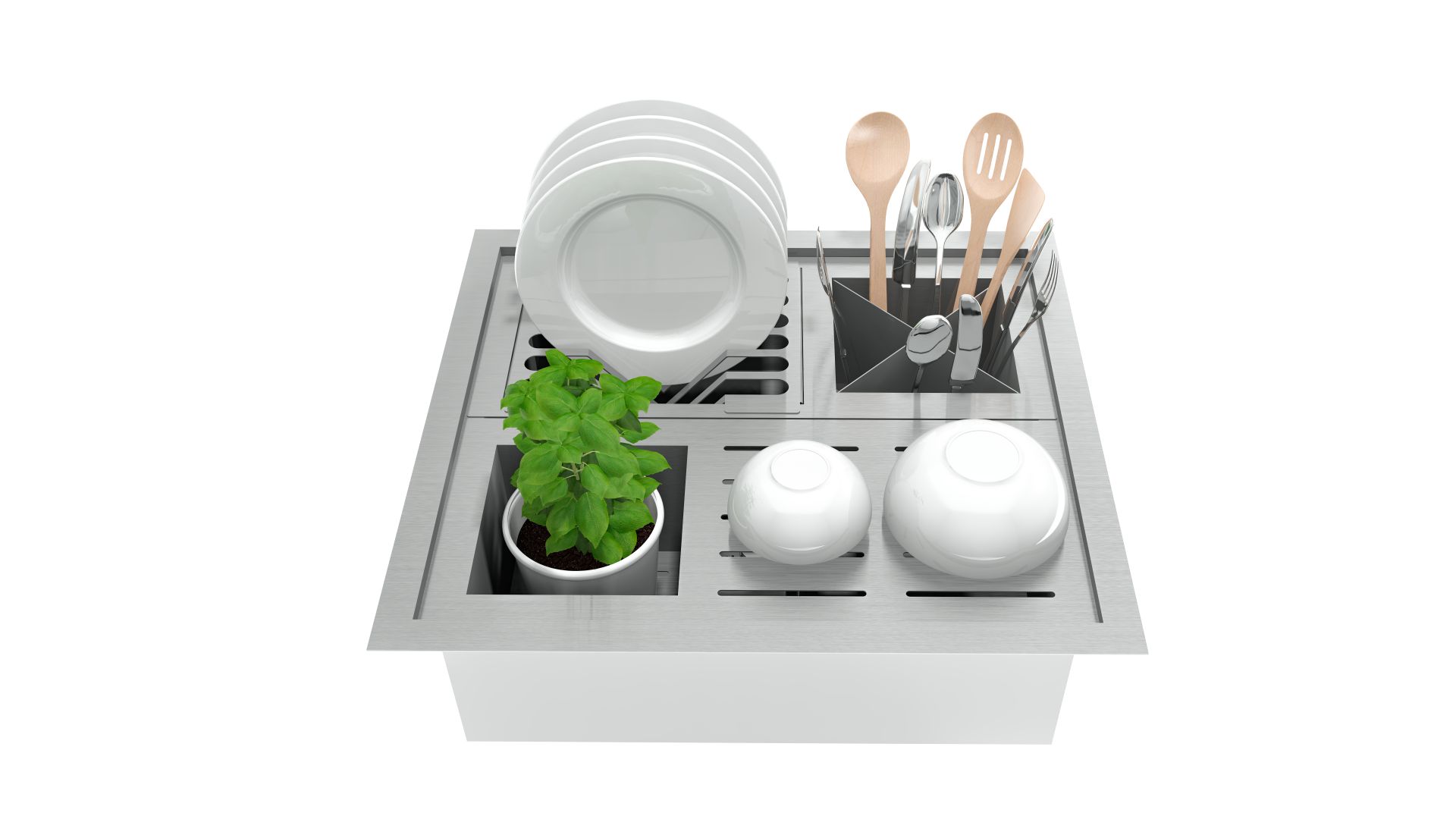Com os acessórios inclusos o CANAL ÚMIDO QUADRATINO auxilia na organização dos utensílios, acomodando separadamente talheres, pratos, copos e ainda dispõe de espaço para mini-horta. Proporcionando mais comodidade no dia a dia, em momentos de receber familiares e amigos.