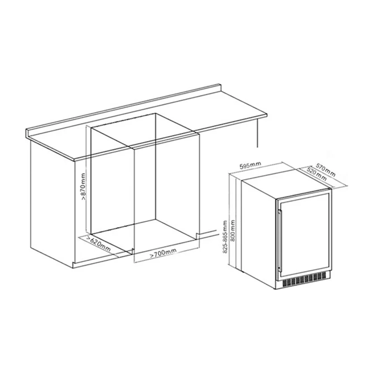 A instalação pode ser built-in ou freestanding e a porta possui um dispositivo de aquecimento na porta para evitar sudação.