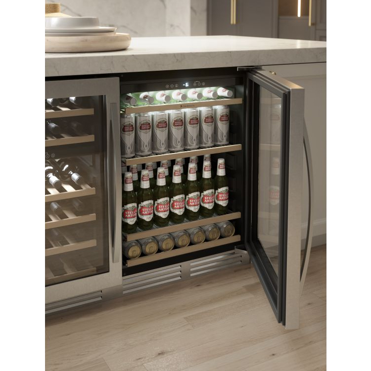 Sua porta em vidro duplo low-e, emoldurada em aço inox escovado, com tecnologia seamless (sem emendas no aço), proporcionando um acabamento sofisticado.
