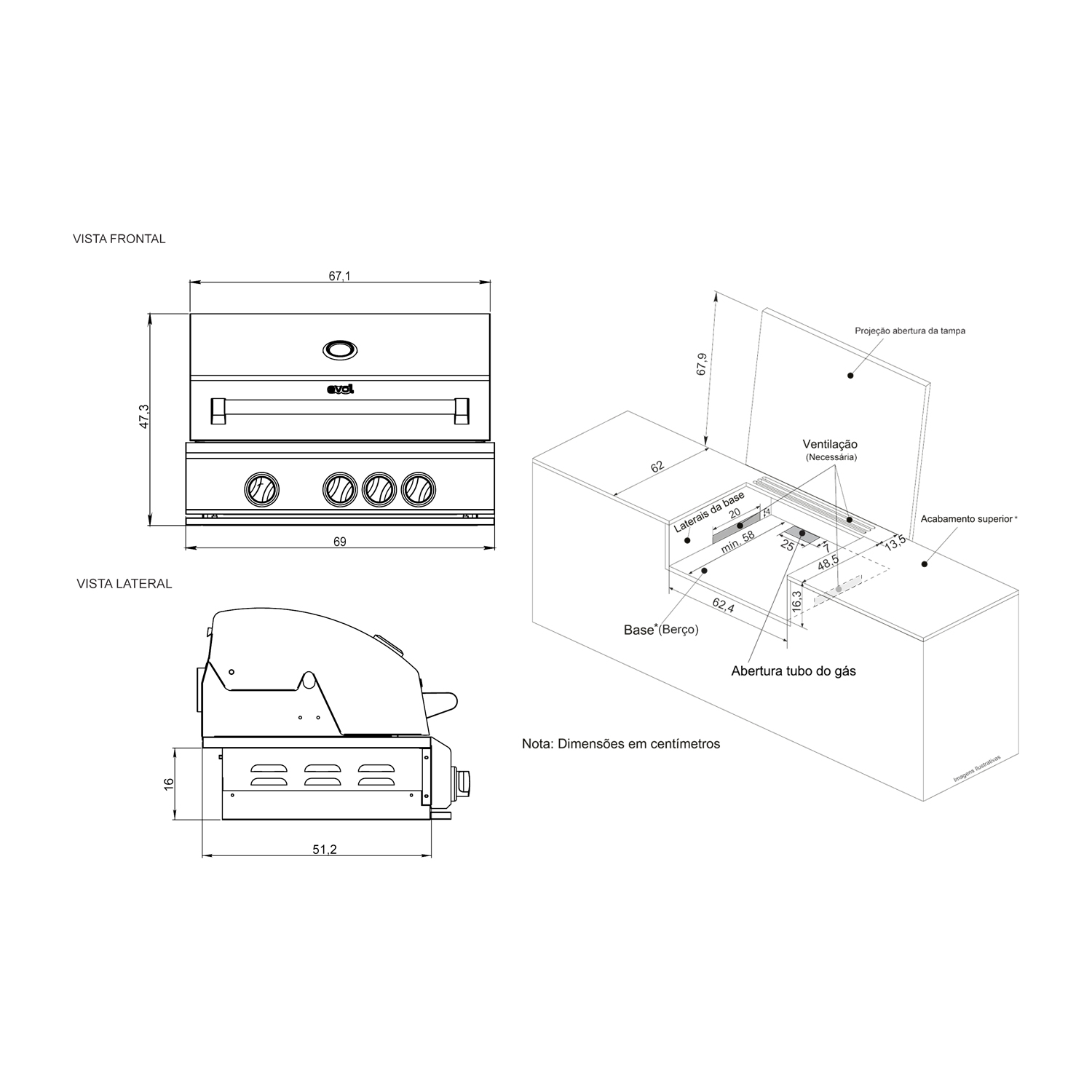 • 3 Queimadores Aço Inox 304 + 1 Infrared