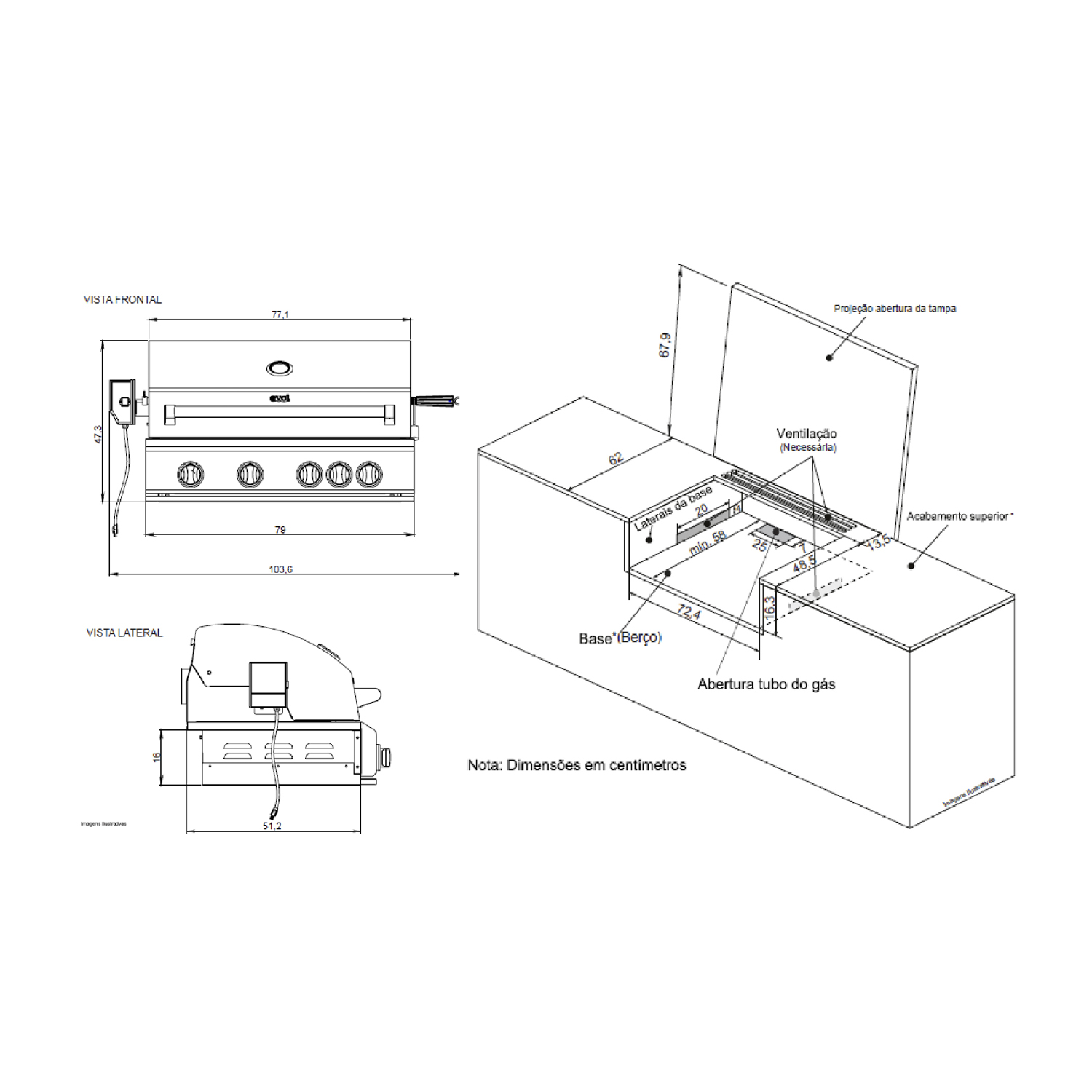 • Área de cozimento: 70 x 46 cm
