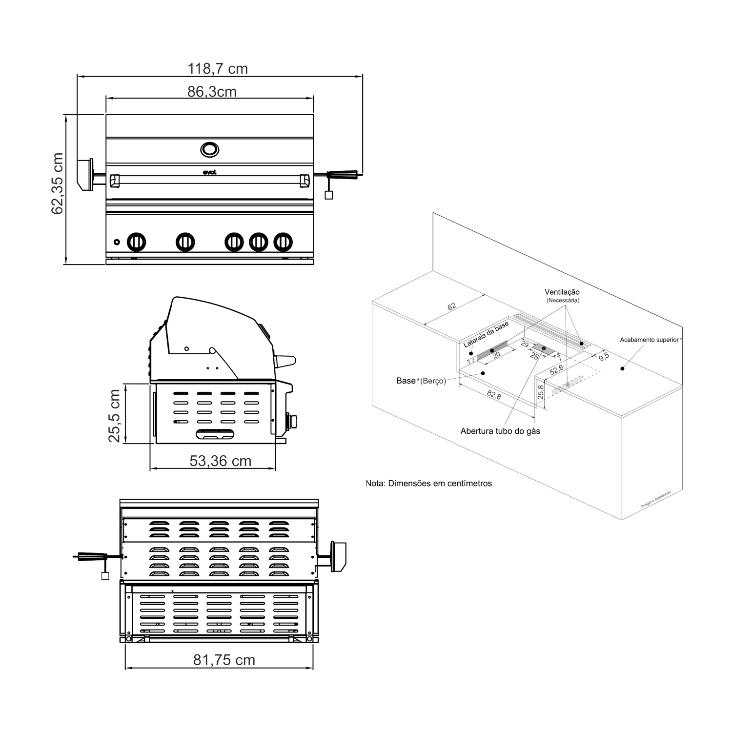 • Área de cozimento: 80 x 47 cm