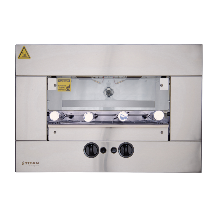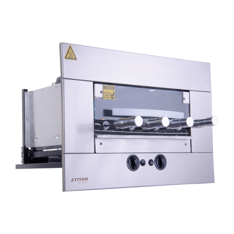 Churrasqueira a gás Titan para EMBUTIR em nicho de alvenaria, seu espaço gourmet mais moderno e prático. É ideal para assar Carnes, Legumes e garantir um saboroso Churrasco. Possui sistema rotativo, iluminação interna e queimadores infravermelhos. Churrasqueira silenciosa e não produz fumaça.