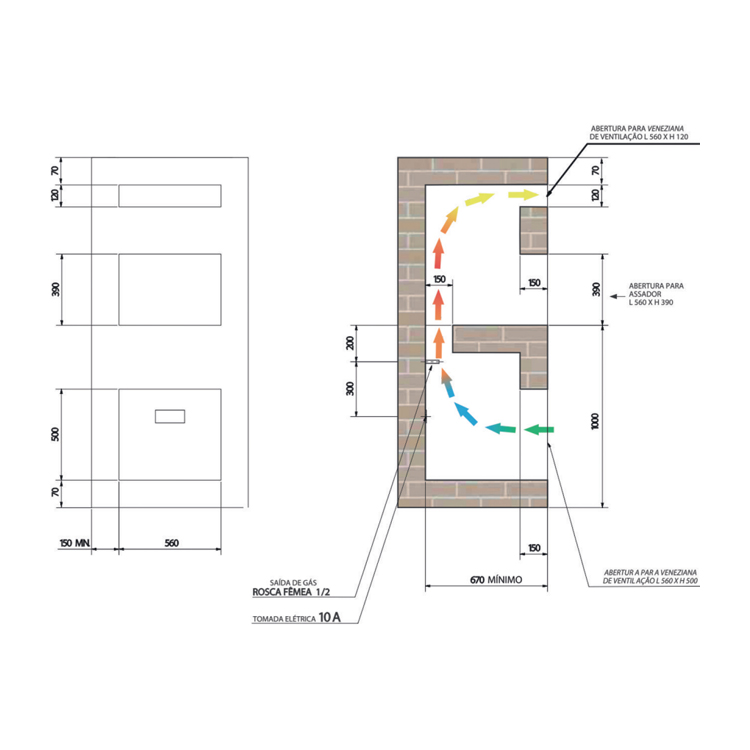 Pressão de funcionamento do Gás: GLP 2,8 a 3,5 KPa | Gás Natural 2,2 KPa;