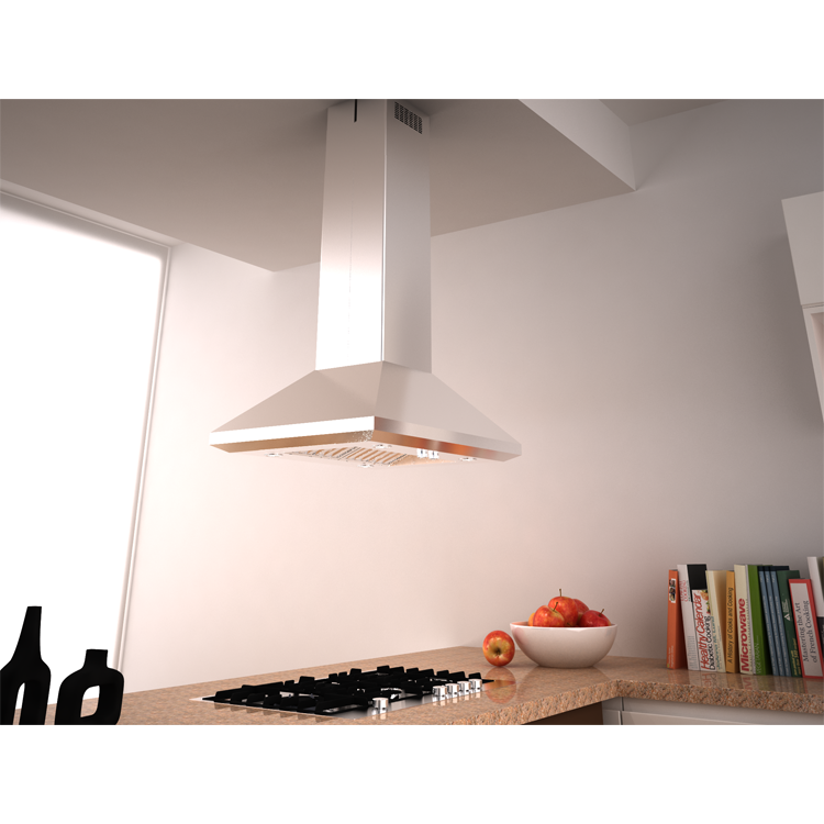 Toda em aço inox não poroso sem cantos vivos com elevada resistência à corrosão e manchas, que proporciona uma elegante aparência à coifa por muito mais tempo.