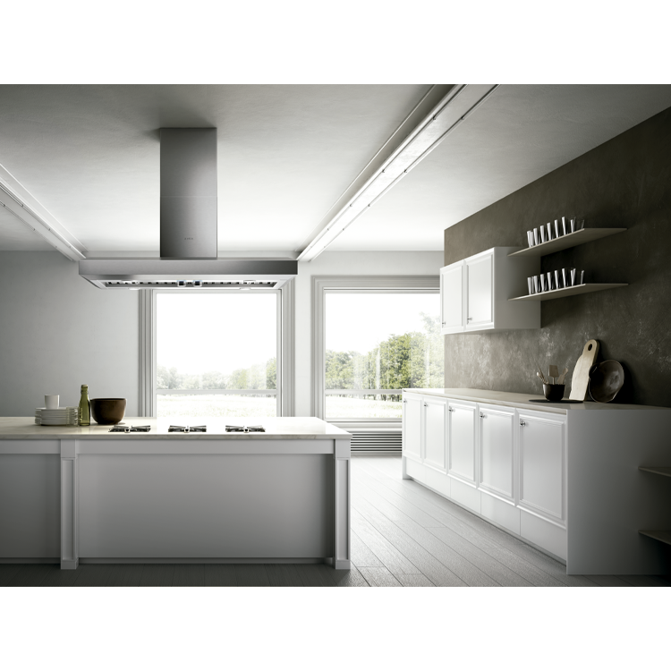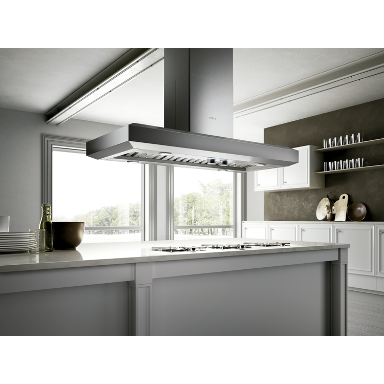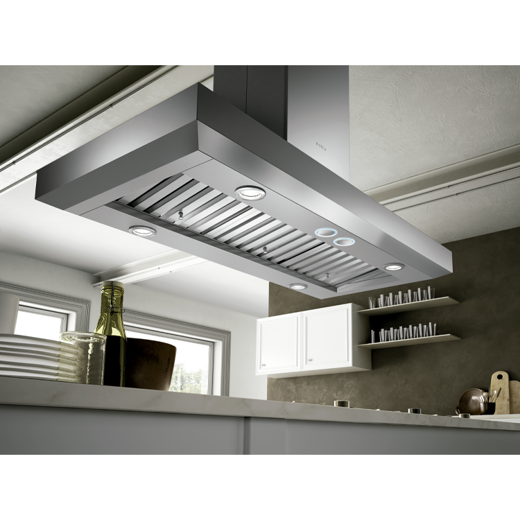 Sua eficiente capacidade de sucção de 1.000 m³/hora com motor interno e funcionamento muito silencioso de 38 dB a 65 dB proporciona grande conforto acústico, indispensável para cozinhas integradas a outros ambientes.
