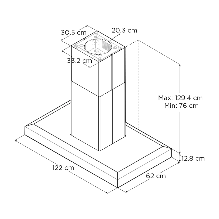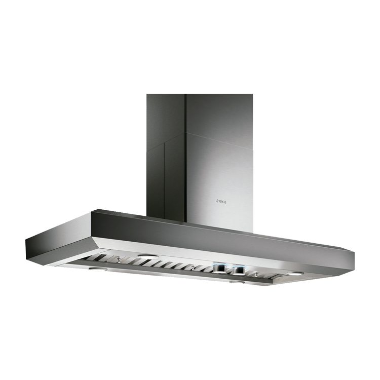 Toda em aço inox não poroso sem cantos vivos com elevada resistência à corrosão e manchas, que proporciona uma elegante aparência à coifa por muito mais tempo.