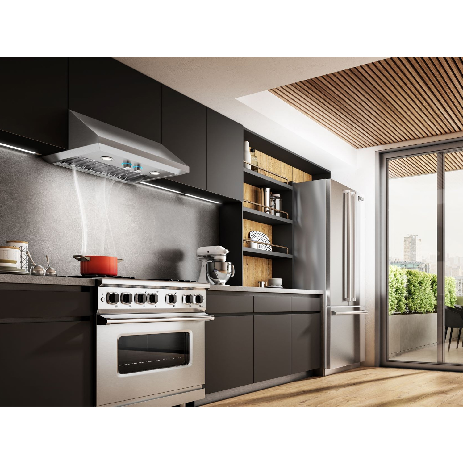Sua eficiente capacidade de sucção de 1.000m3 / hora possui um funcionamento muito silencioso de 38 dB a 65 dB que proporciona grande conforto acústico ao ser utilizada, indispensável para cozinhas integradas a outros ambientes.