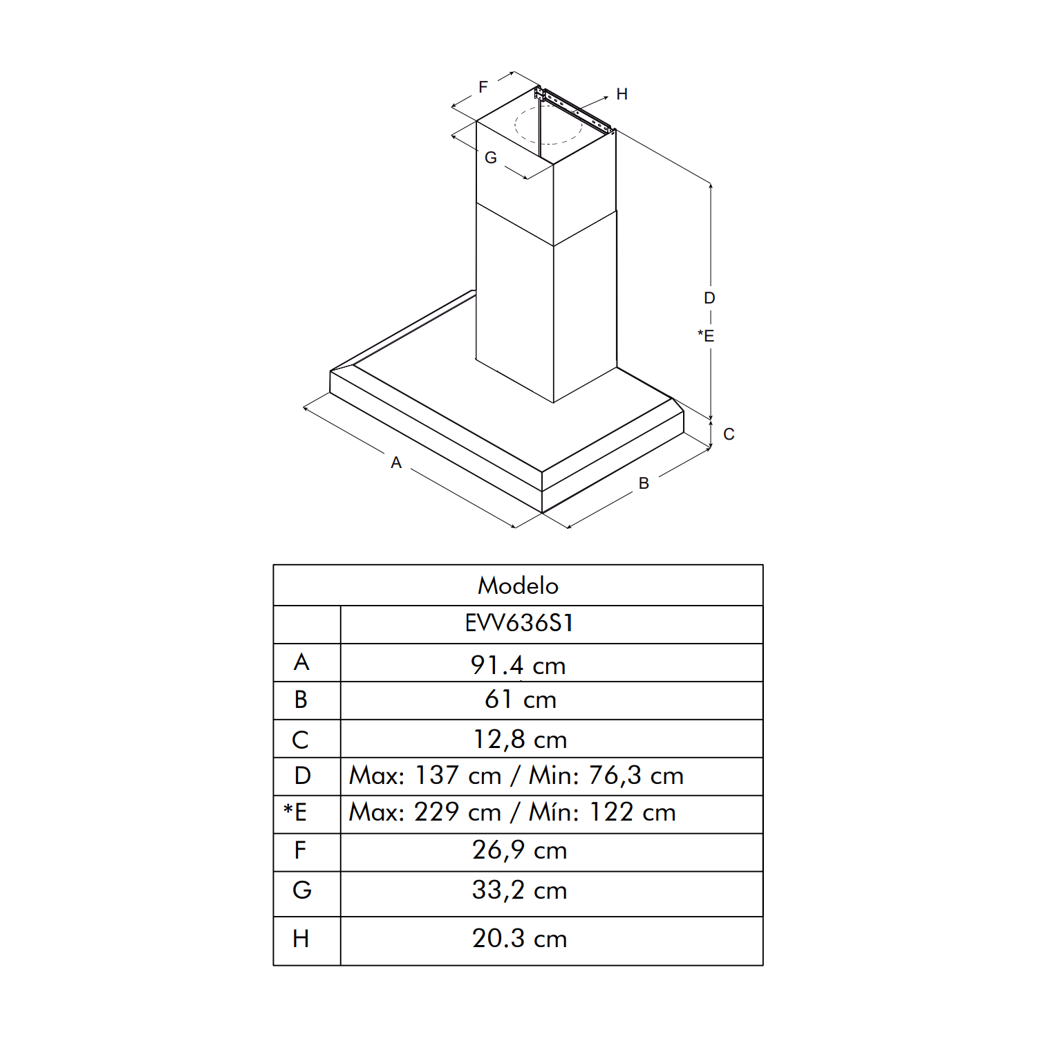 | Diâmetro do duto de exaustão | com 20,0 cm de diâmetro |