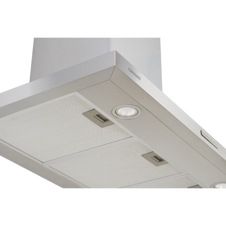A coifa CRR 12.9 é produzida em aço inox, este modelo possui comando eletrônico push com três velocidades mais timer, alcançando uma vazão de 1.050 m³ /h.