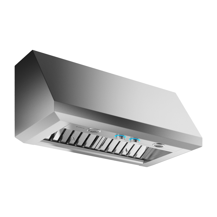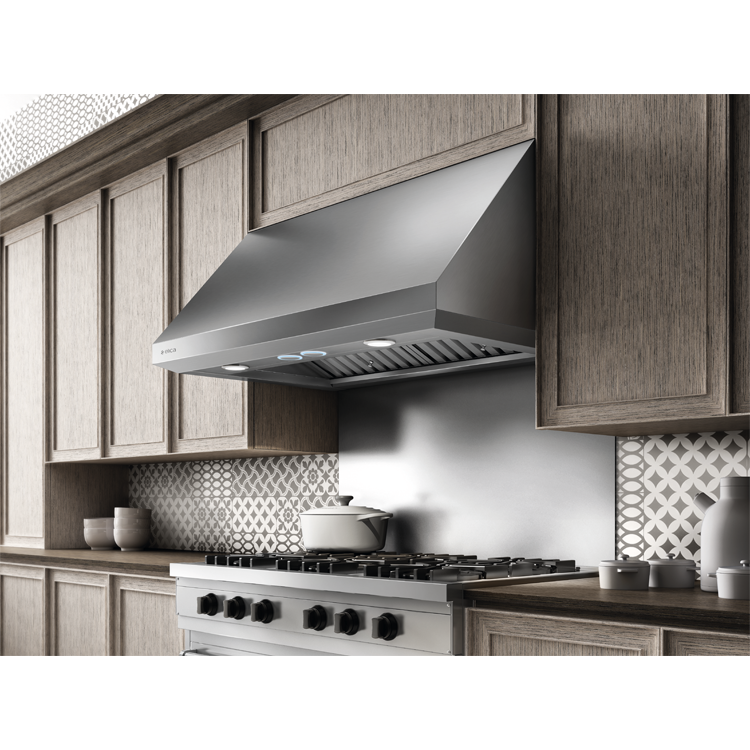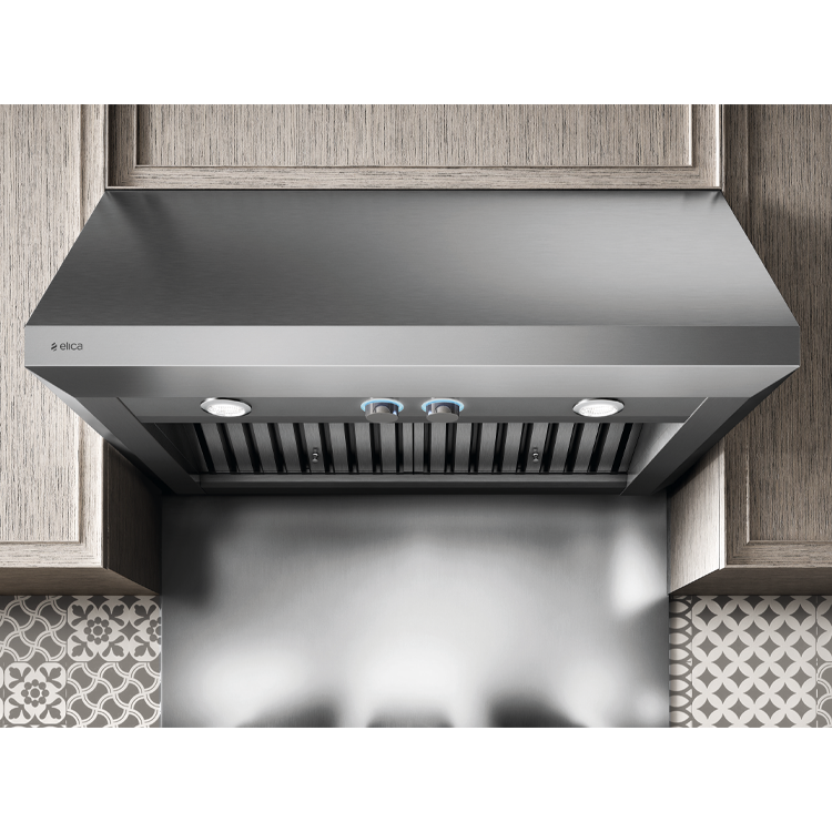 Toda em aço inox não poroso sem cantos vivos com elevada resistência à corrosão e manchas, que proporciona uma elegante aparência à coifa por muito mais tempo.