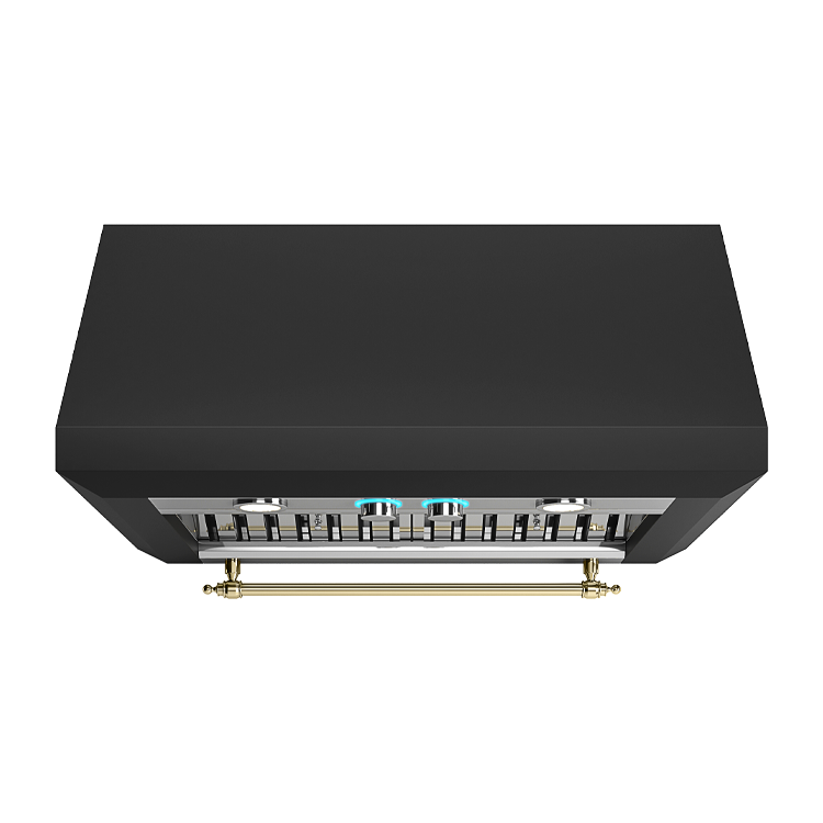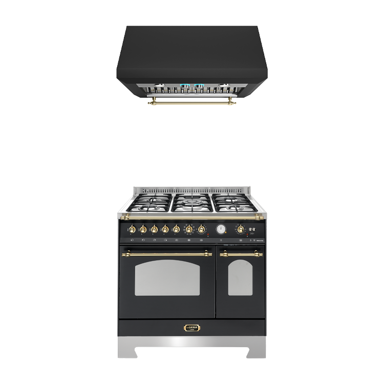 Seu requintado design vintage na cor preto fosco com varão em latão polido foi desenvolvido para compor pares perfeitos com os fogões e rangetops LOFRA Dolcevita.