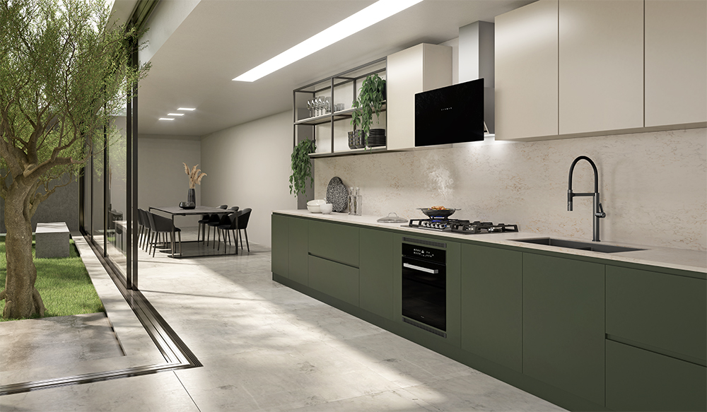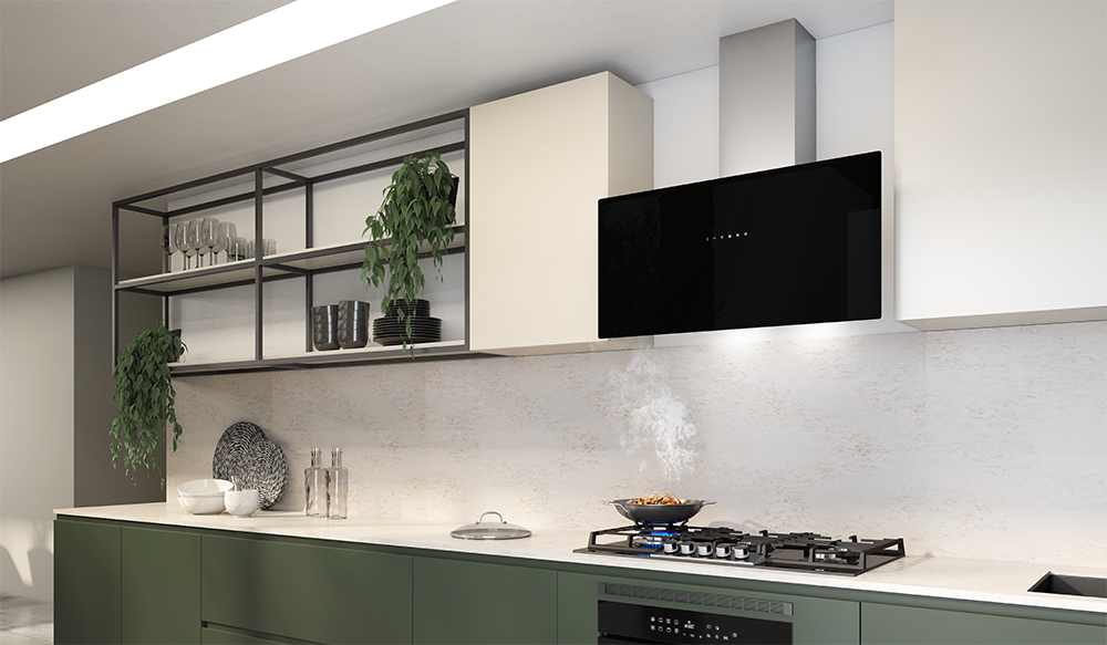 Proporcionando mais comodidade, ao ligar a coifa, automaticamente ela abrirá. A aspiração é central, ou seja, a sucção do ar da cozinha, ocorre pela parte central da coifa.