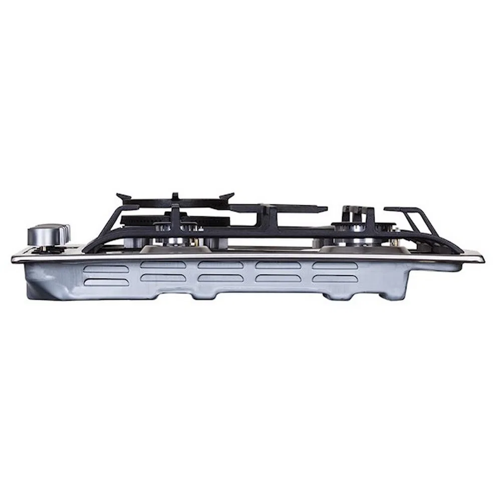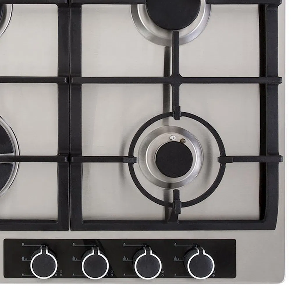Com grades e trempes produzidas em ferro fundido, este cooktop possui plano de trabalho em aço inox e 4 queimadores: 1 auxiliar, 2 rápidos e 1 especial dupla chama, que garante máxima propagação e eficiência, reduzindo o tempo de preparo dos alimentos. Ainda conta com o sistema Gás Control, uma válvula de segurança contra vazamento que interrompe o fluxo de gás caso a chama se apague acidentalmente. Projetado especialmente para ser embutido.