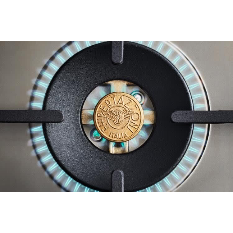 Fabricado na Itália e equipado com 4 queimadores profissionais modelo Sabaf II a gás em latão maciço, que oferecem amplas variações de chama para se desfrutar de deliciosos resultados culinários em todos os tipos de receitas.