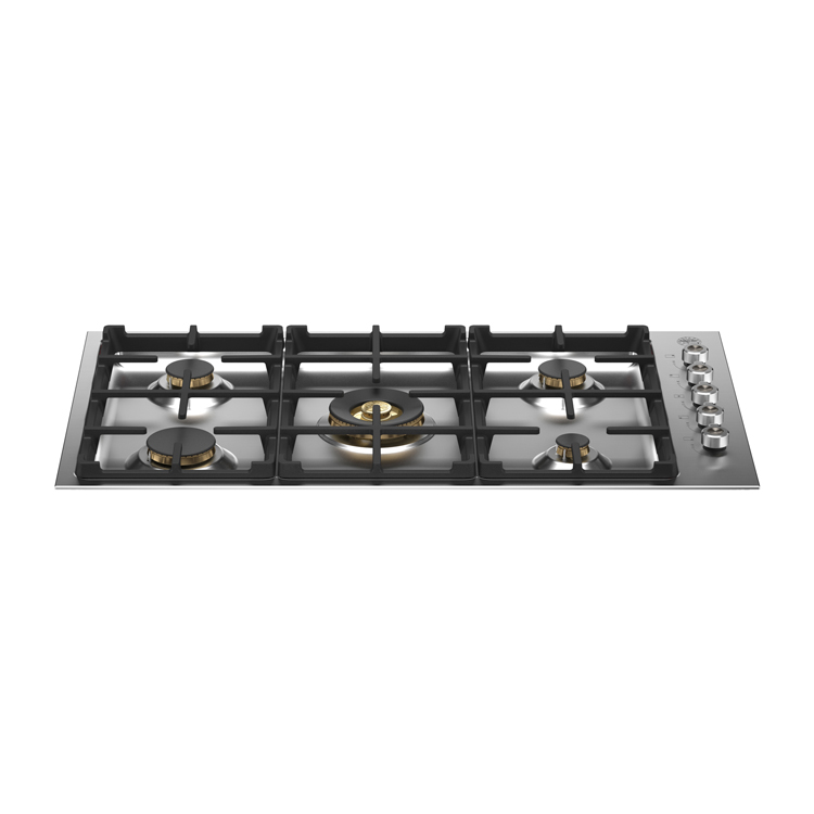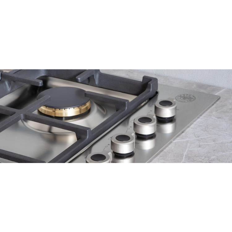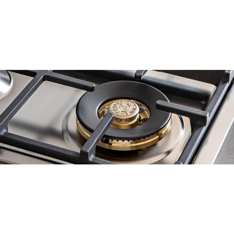 Fabricado na Itália e equipado com 5 queimadores profissionais modelo Sabaf II a gás em latão maciço, que oferecem amplas variações de chama para se desfrutar de deliciosos resultados culinários em todos os tipos de receitas.