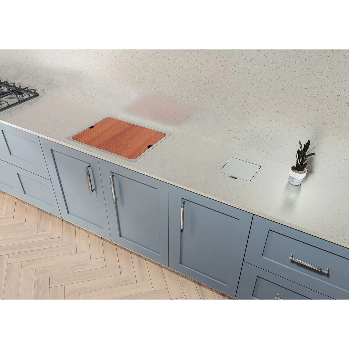 A cuba Tramontina Workstation Quadrum Deep 50 em aço inox com acessórios é mais um lançamento da linha Design Collection e deixará sua cozinha preparada para sua rotina diária, sem abrir mão da beleza e do estilo. Com uma variedade de acessórios, ela é uma cuba completa com misturador monocomando Hidden, válvula com escape, duas tábuas em madeira para seu fechamento, cesto coador, tábua em madeira com encaixe para bowl ralador e dois bowls auxiliares. Seu acabamento é Scotch Brite, o que garante um estilo diferenciado e maior durabilidade. A Cuba Workstation Quadrum Deep 50 pode ser instalada no modo semi-flush, por cima do granito ou no modo flush, que fica perfeitamente alinhada à bancada!