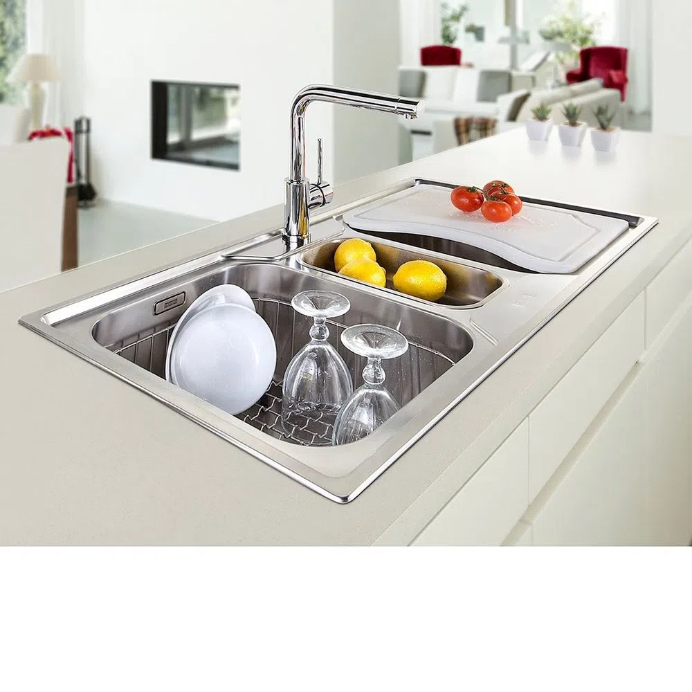 A Cuba Tripla De Sobrepor Smart Franke 100×50 traz sofisticação e funcionalidade para a sua cozinha. Seu design diferenciado com 3 cubas permitem um ótimo aproveitamento e organização do espaço interno.