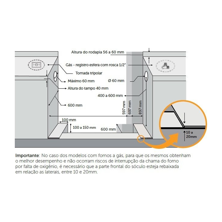 Os fogões Bertazzoni podem ser embutidos sem necessidade de frestas de ventilação junto aos móveis, com ou sem os seus pés, para uma perfeita integração com os móveis de sua cozinha.