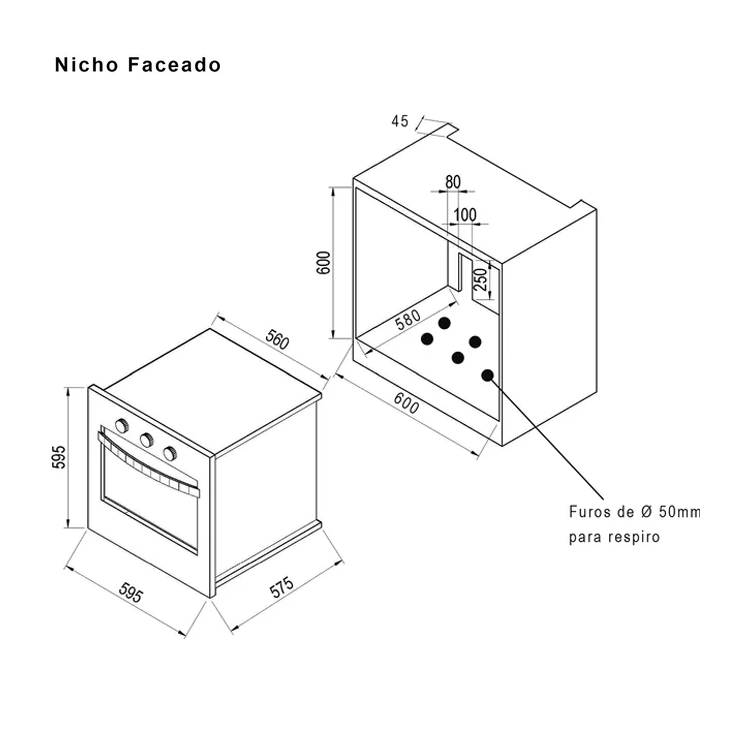 - Dimensões do Nicho – Faceado (LxAxP): 600 x 600 x 595 mm