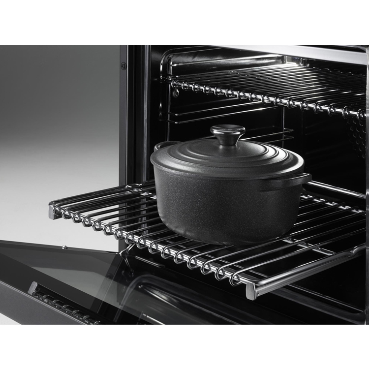Sua ampla capacidade de 116 litros, com sete alturas numeradas para as prateleiras, é ideal para o preparo simultâneo de vários pratos que necessitam de diferentes tipos de calor, temperatura e tempos de preparo.