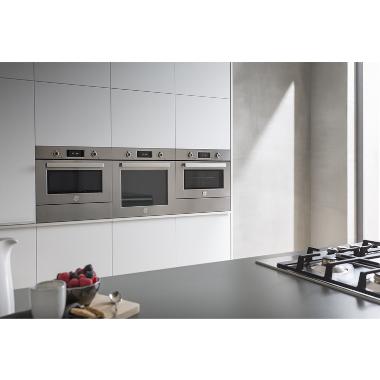 Design profissional refinado com os mais avançados recursos culinários unidos em um imponente forno made in Italy, em aço inox escovado, desenvolvido pela marca com a mais longa experiência na fabricação de eletrodomésticos premium no mundo.