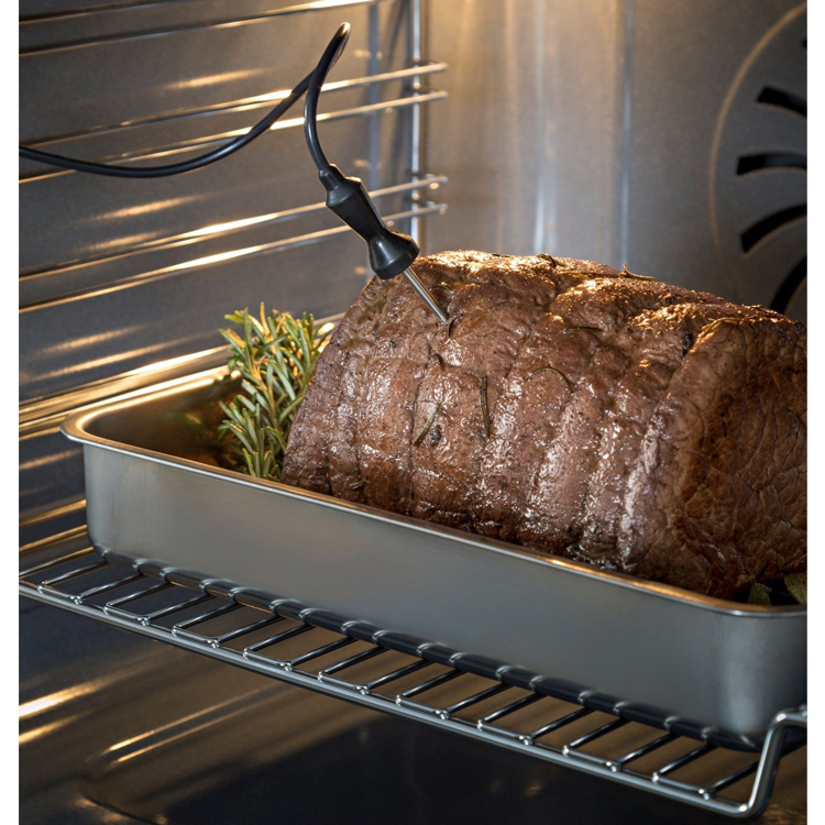 A sonda de temperatura prepara com maior precisão por assar controlando a temperatura interna dos alimentos, oferecendo alta qualidade de resultados como os dos melhores restaurantes.