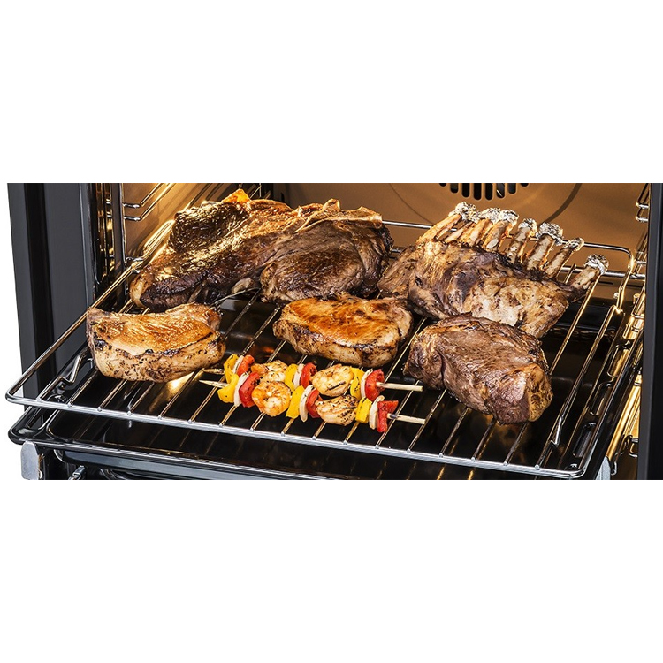 Sua ampla capacidade de 76 litros, com cinco alturas para prateleiras e bandejas, é ideal para o preparo simultâneo de vários pratos utilizando todo o espaço interno do forno.