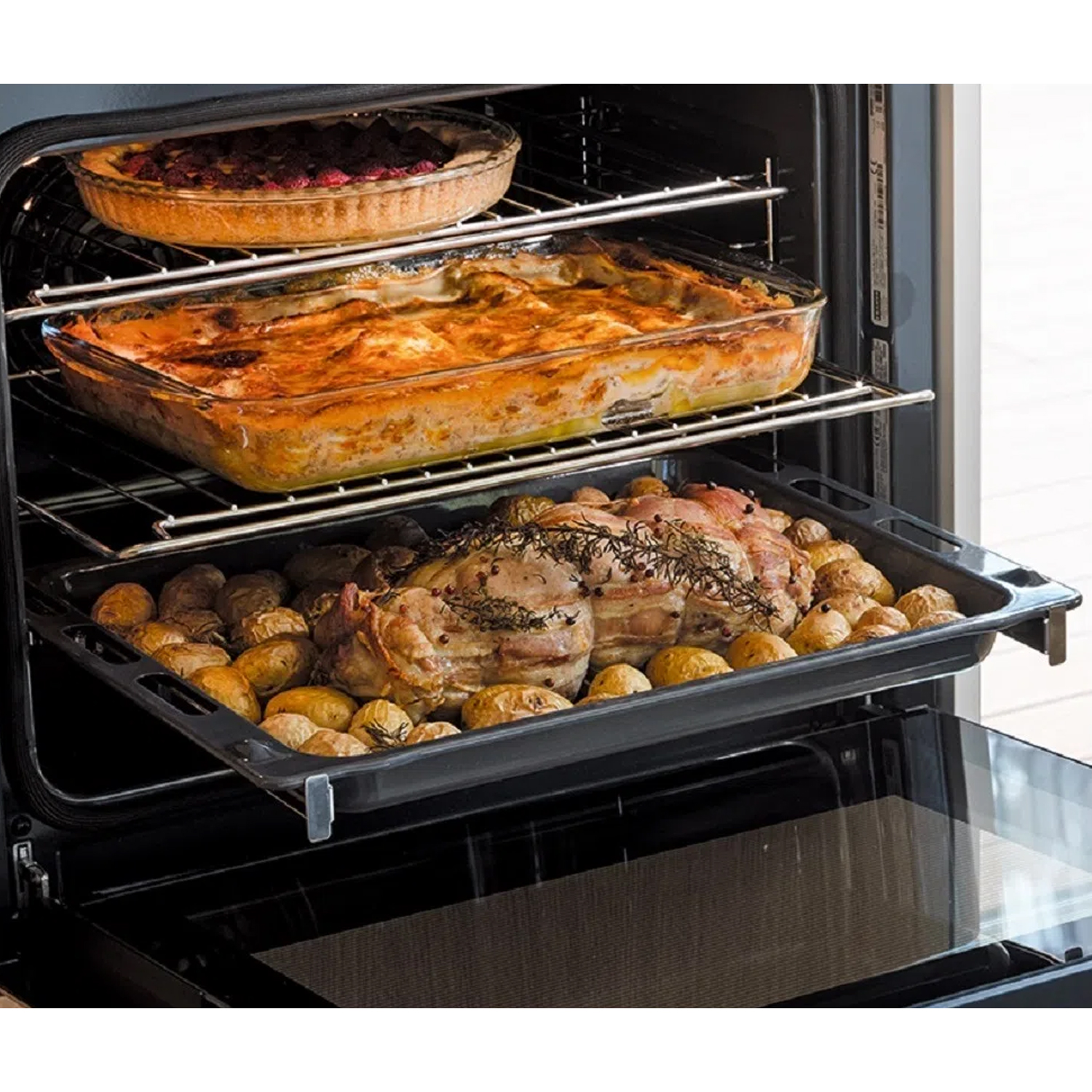 Elegância e performance para várias receitas com o novo FMA 97 P, com destaque para o sistema de limpeza por PIRÓLISE, fechamento das portas suave SMOOTH2CLOSE, guias telescópicas deslizantes em 2 níveis e sistema de ar forçado MULTICOOKING que permite preparar pratos doces e salgados simultaneamente.