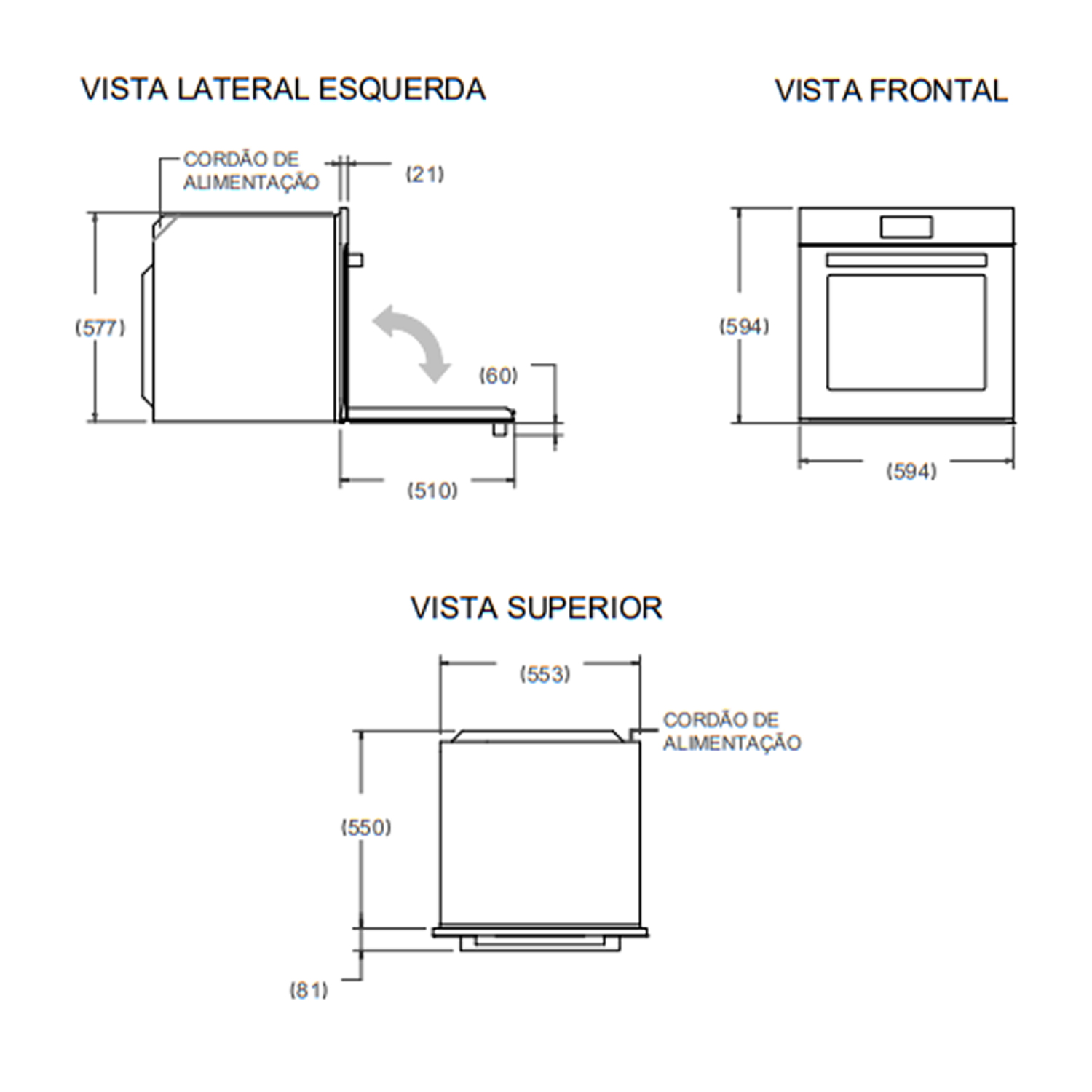 Profundidade: 550 mm