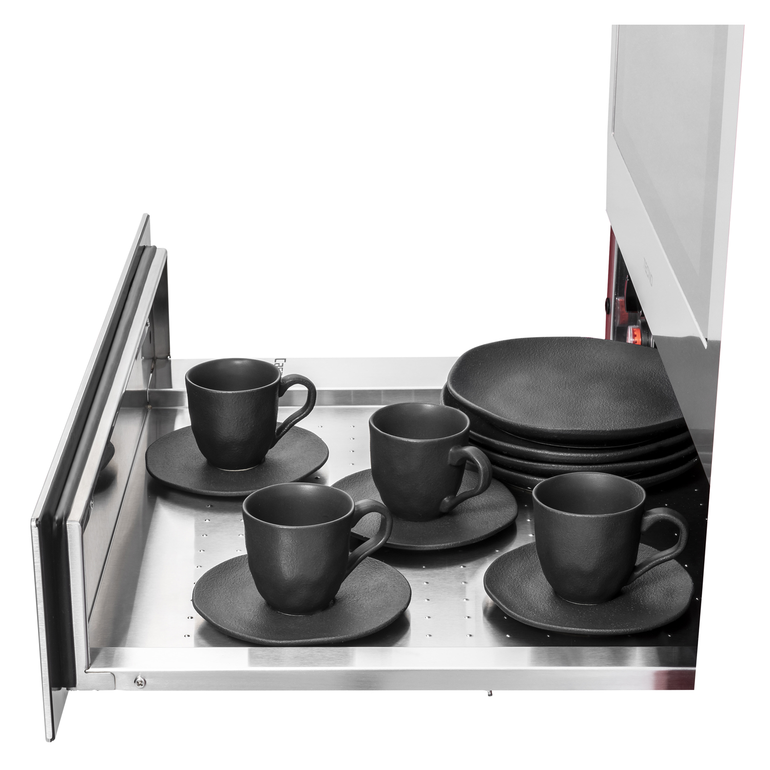 Led indicador de funcionamento: Elegantemente embutido no painel indica o aquecimento do interior da gaveta.