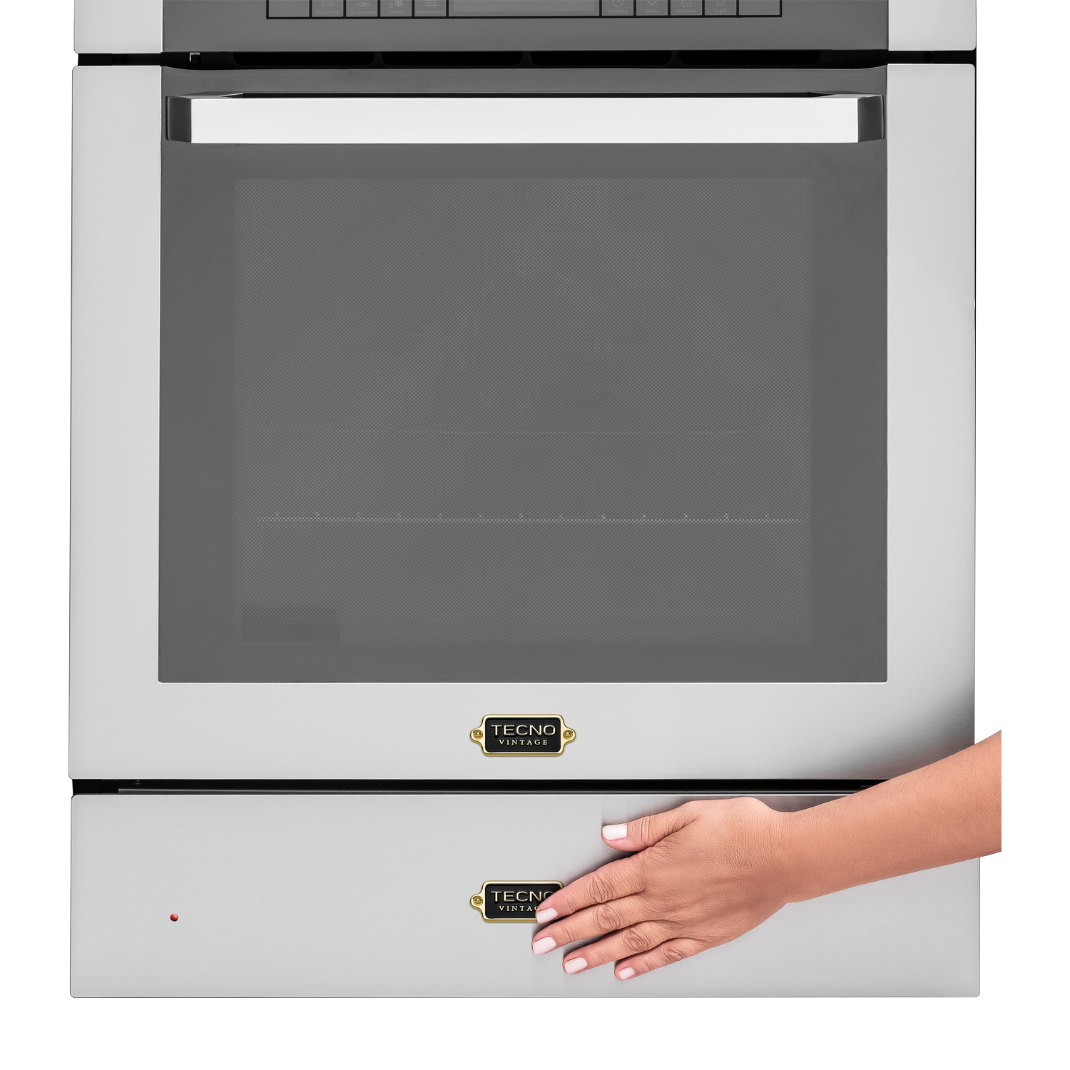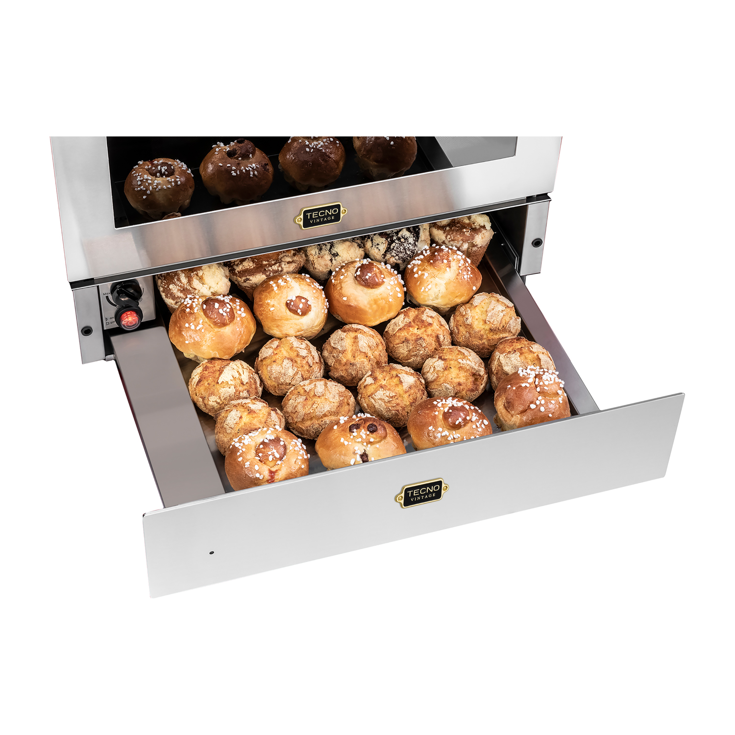 A gaveta aquecida TG 14EXAV compõe um elegante conjunto em torre horizontal ou vertical com o forno combinado TECNO TK38 e/ou o forno TO73, que possuem o mesmo design e acabamento.
