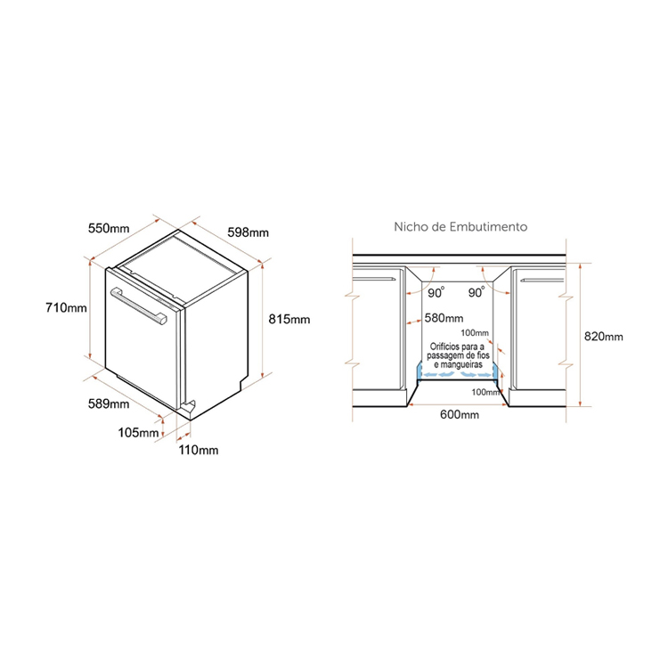 Pode ainda ser personalizada com o acabamento e puxador de sua escolha sobre a porta e rodapé da lava louças para uma elegante integração com os móveis de sua cozinha.