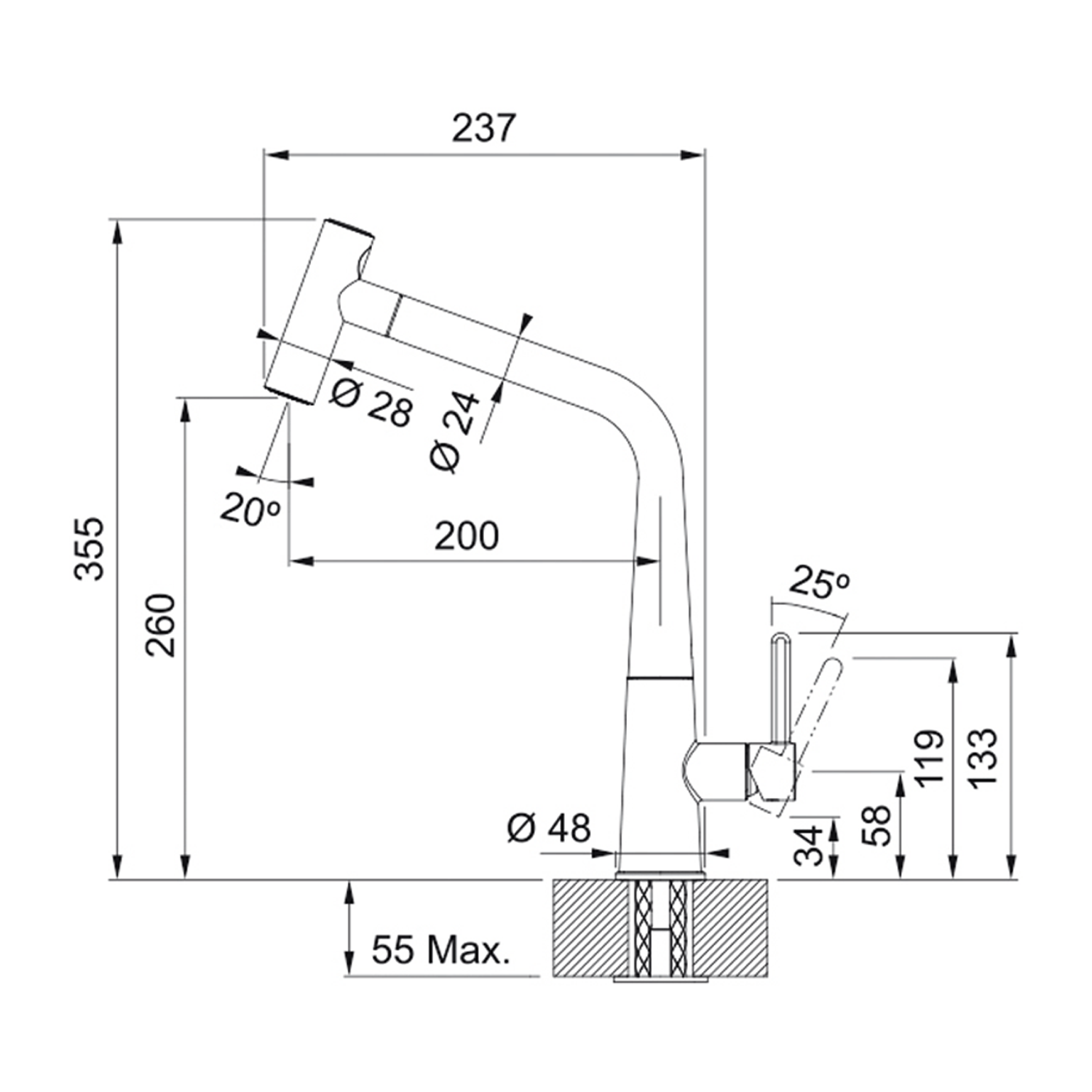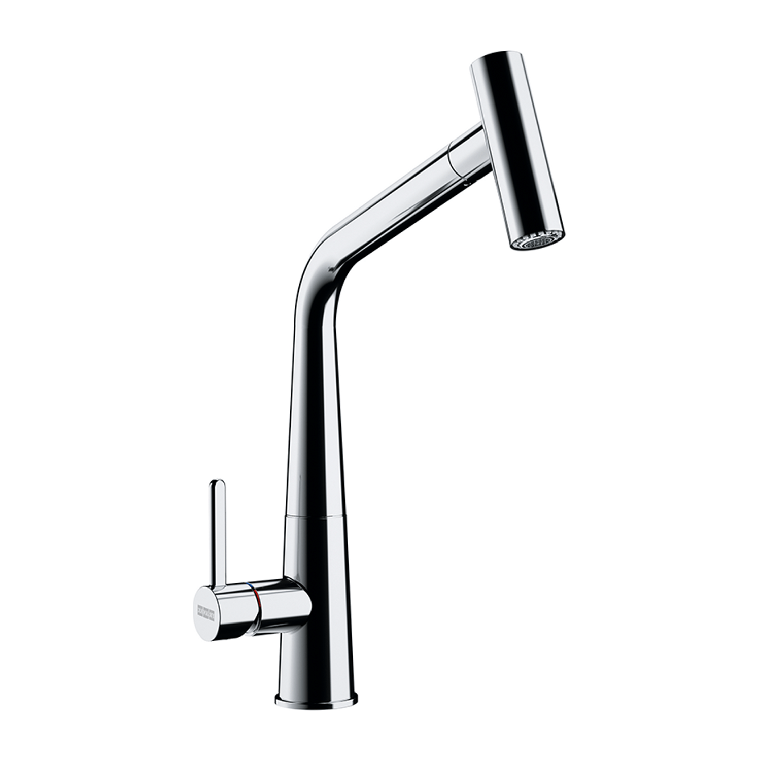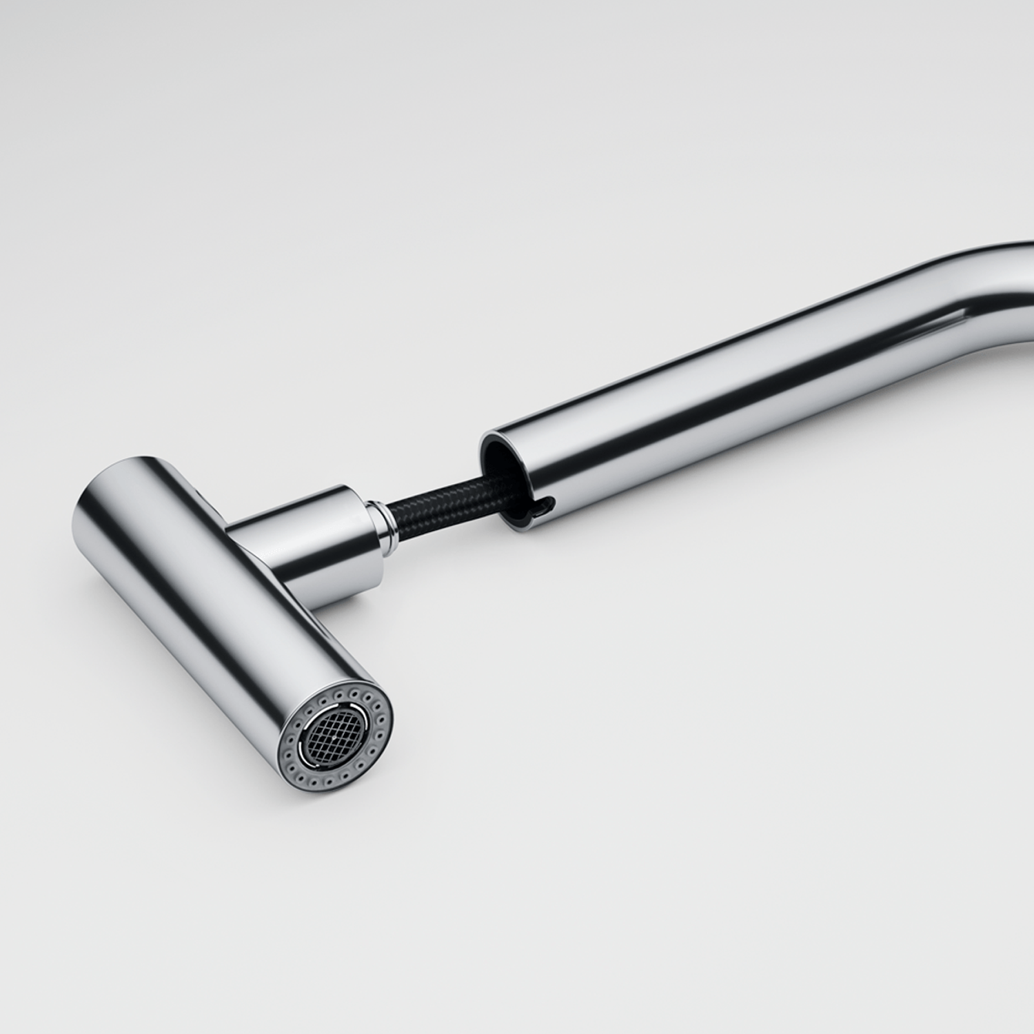 Bica alta, extensível em nylon preto: maior alcance e mobilidade para as atividades na cozinha.