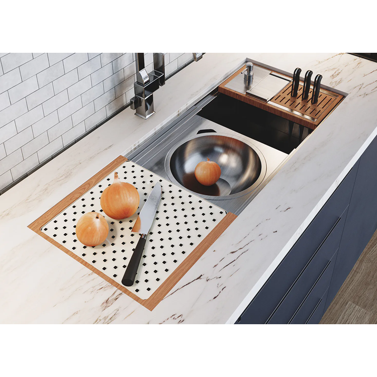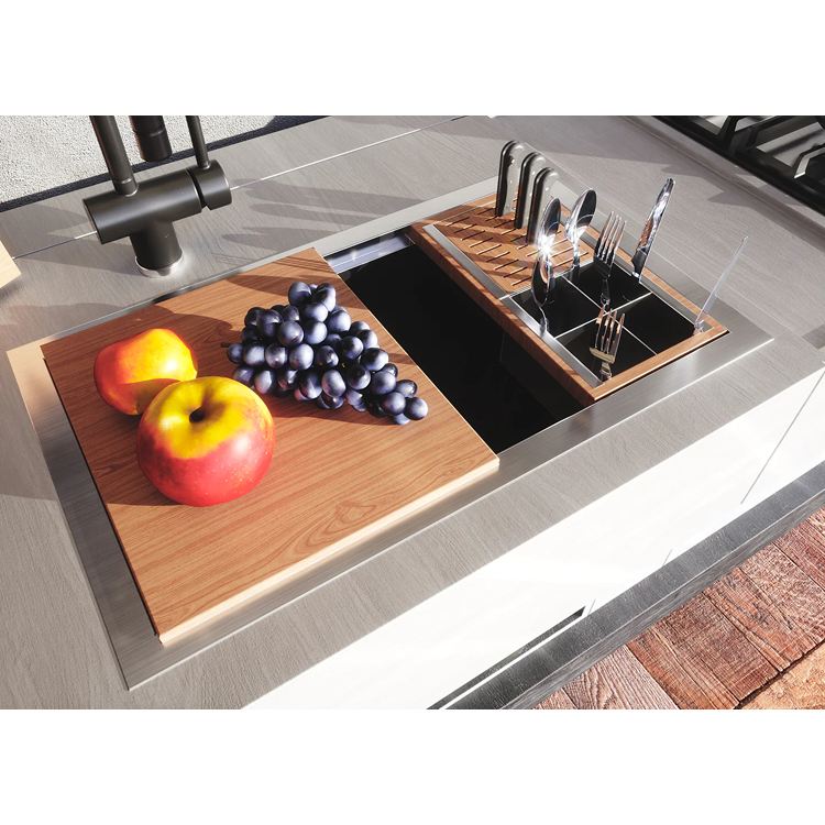 Ele ainda contém um formato que possibilita o uso tanto para facas curtas quanto para facas longas de até 25 cm de comprimento. Aliás, o acessório ainda integra confortavelmente até 18 facas, um acessório pequeno mas que otimiza espaço na sua cuba, além de ser muito discreto esse porta facas ainda complementa sua decoração da cozinha, combinando sofisticação e funcionalidade para a sua cuba ou calha seca e ambiente culinário.