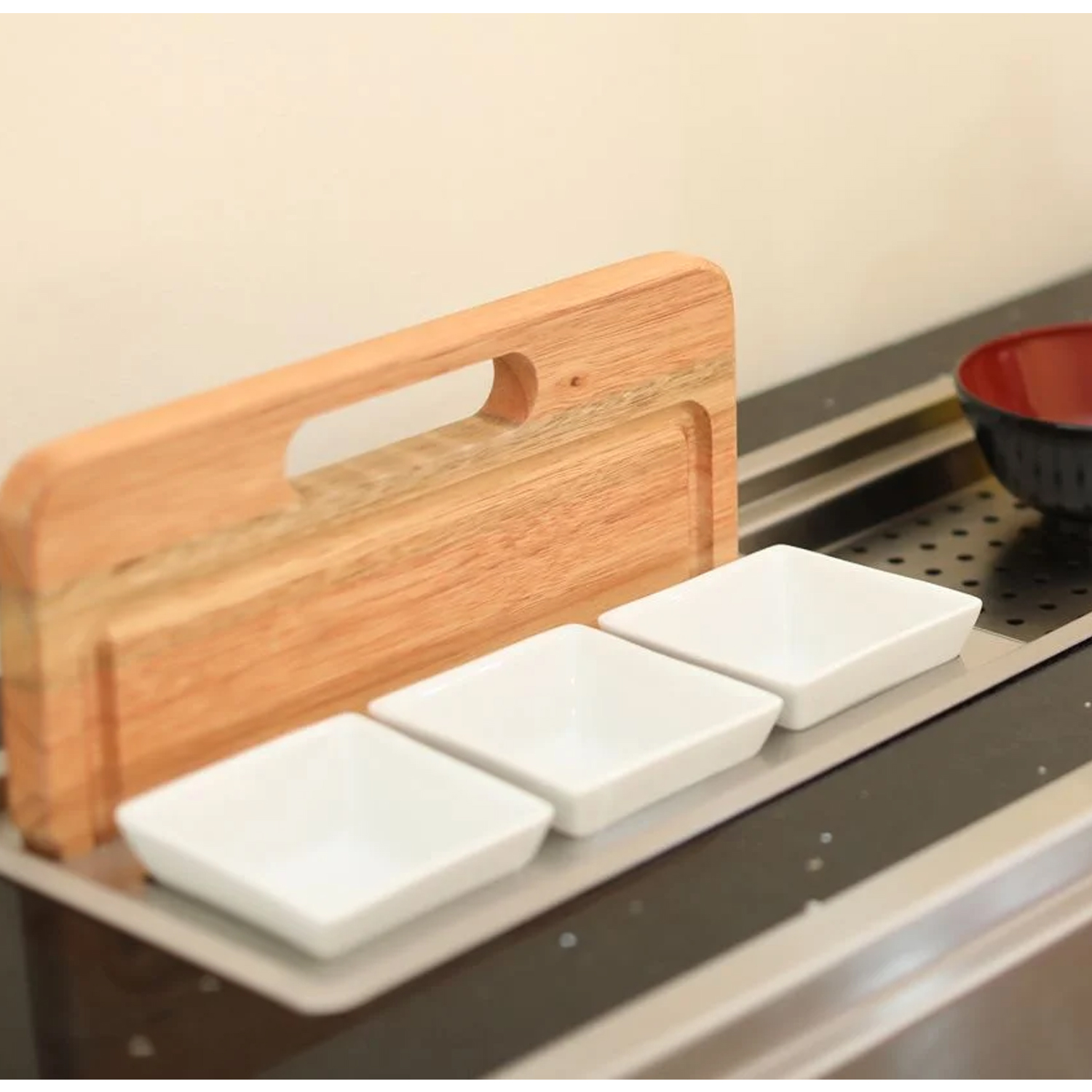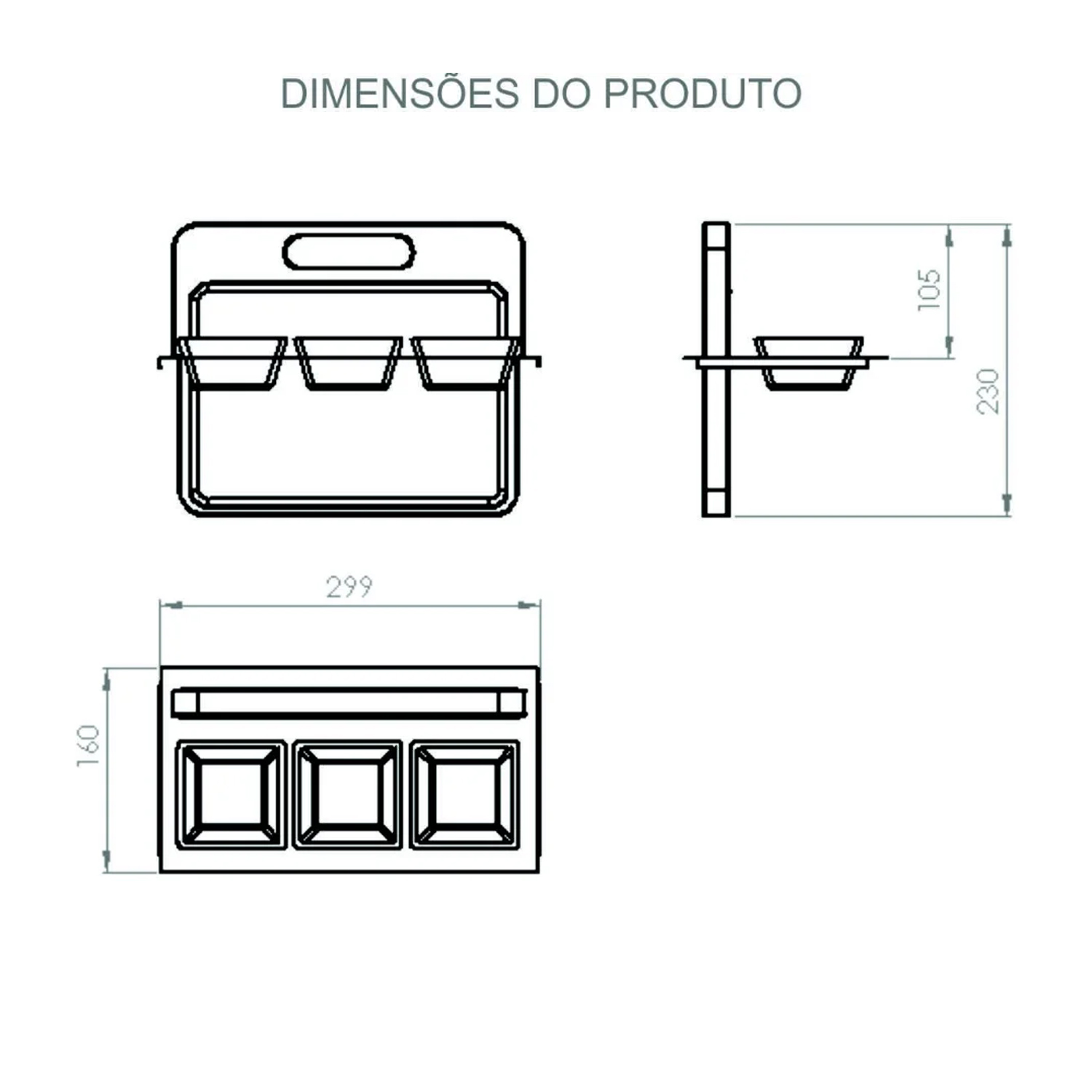 Ter uma tábua de corte sempre à mão é indispensável para quem vai para a cozinha certo? Claro, e se tiver algum detalhe a mais para facilitar a sua vida é ainda melhor. Este acessório possui tábua de corte em madeira com proteção antibacteriana e três potes em porcelana para pequenas porções de temperos ou petiscos. Você ainda pode utilizar a tábua como bandeja para os potinhos, use sua criatividade.