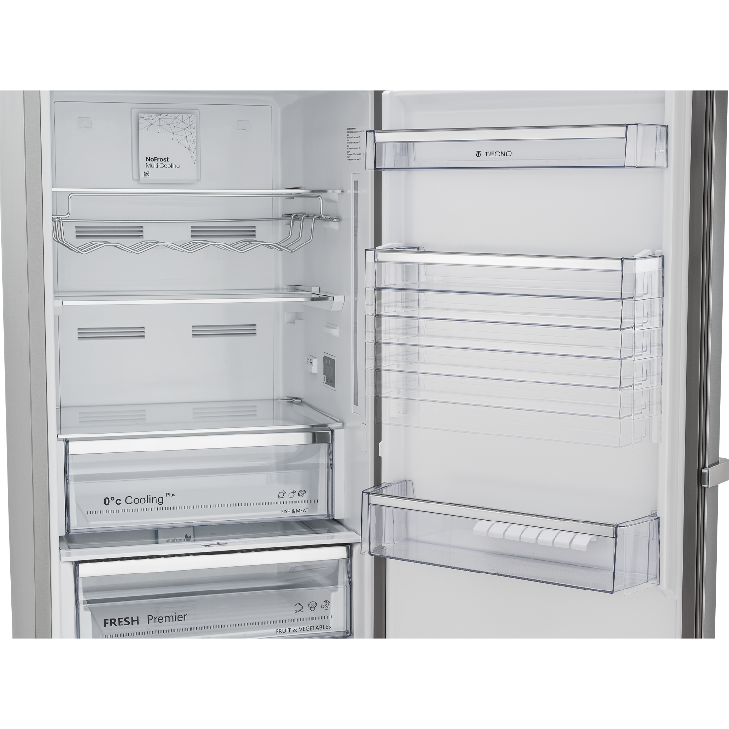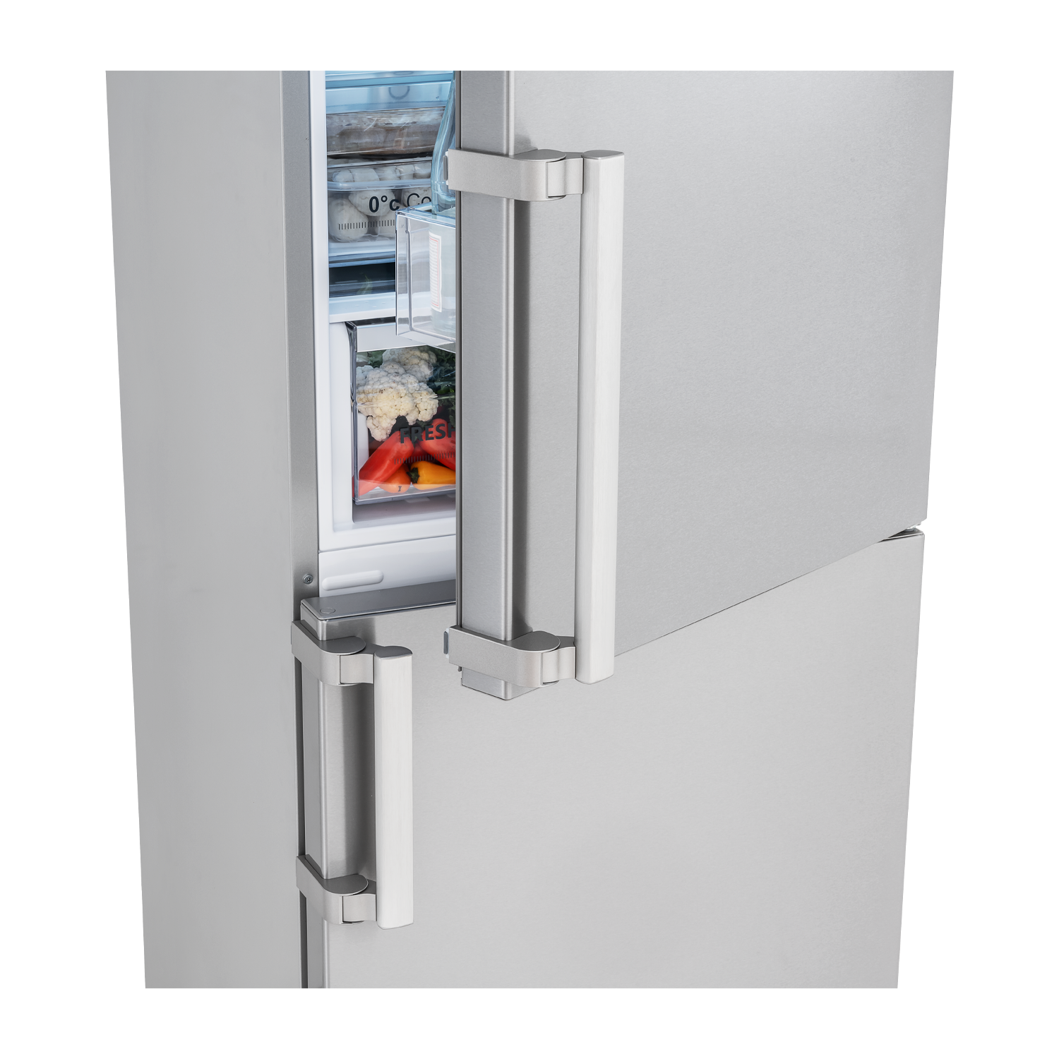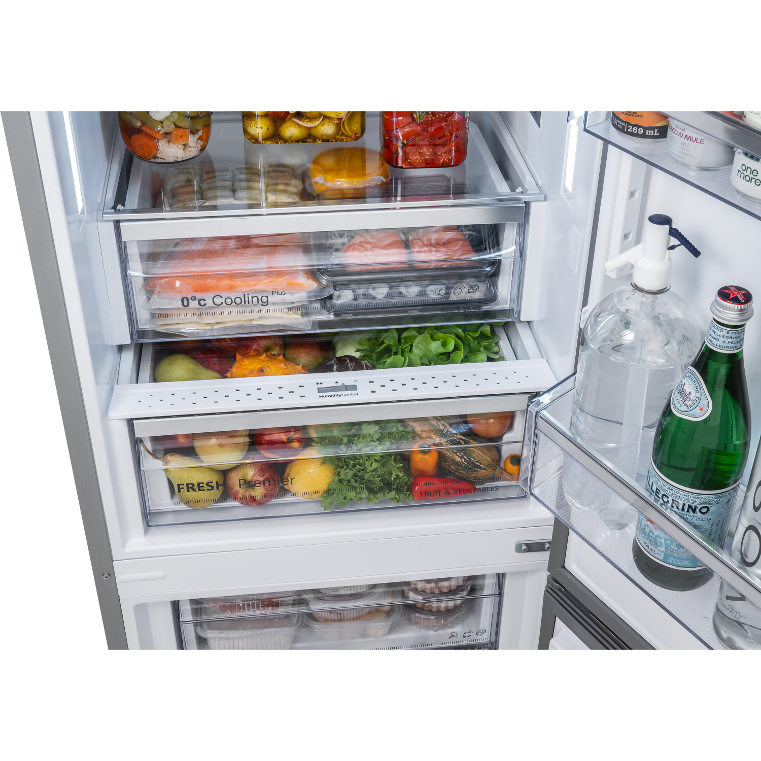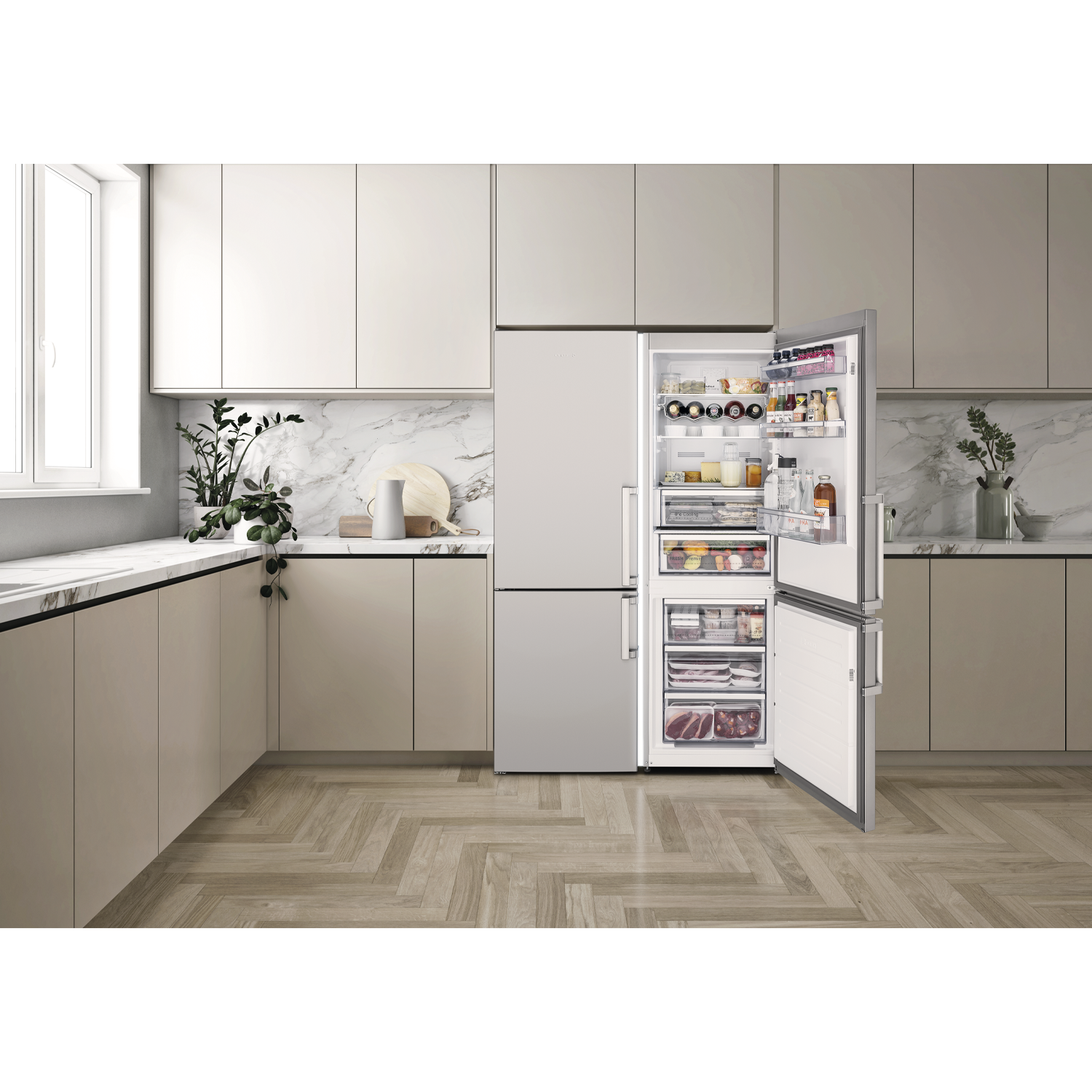 Modelo bottom freezer em aço inox anti-manchas com refinados puxadores que oferece uma perfeita integração no piso ou embutido nos móveis de sua cozinha planejada, sem necessitar de frestas de ventilação.