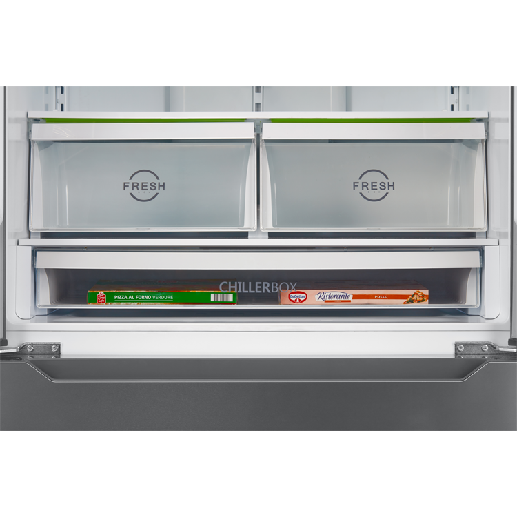 O modelo possui compressor INVERTER que é o coração do refrigerador e FRESH COOLING SYSTEM, que proporcionam refrigeração independente que pode manter a temperatura interna constante, atendendo diferentes requisitos de armazenamento de alimentos.