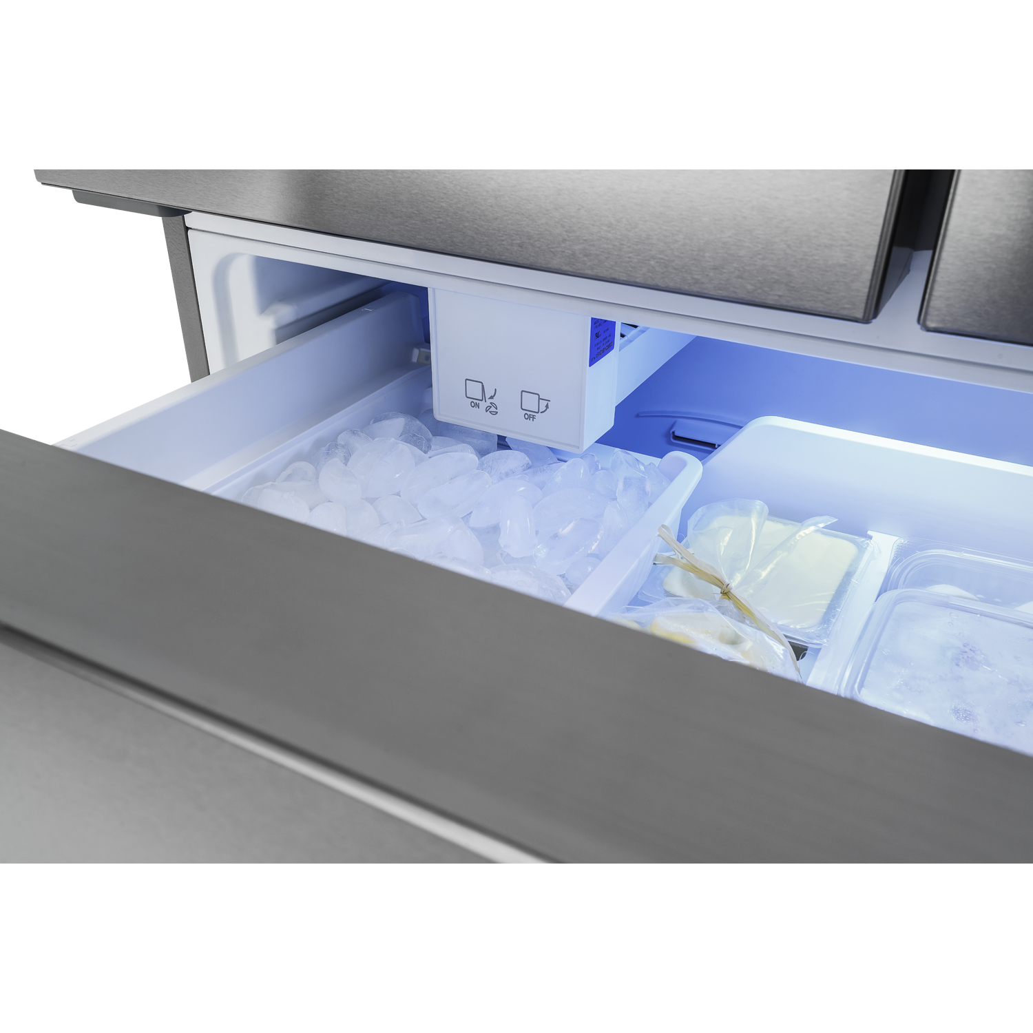 Seu amplo freezer com 2 gavetas possui capacidade de 202 litros e icemaker automático que produz 1,3 Kg de gelo por dia e armazena 3,5 Kg de gelo.