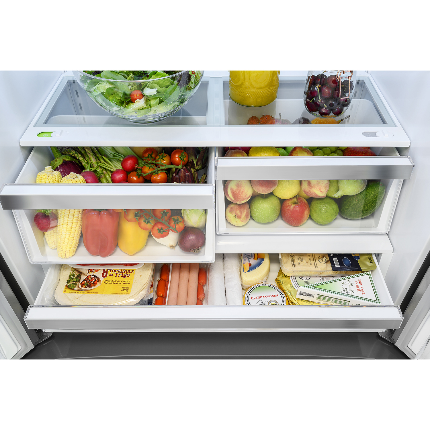 As 3 robustas prateleiras em vidro com frisos cromados e 3 amplas gavetas oferecem espaço para todos os tamanhos de alimentos no compartimento refrigerado.